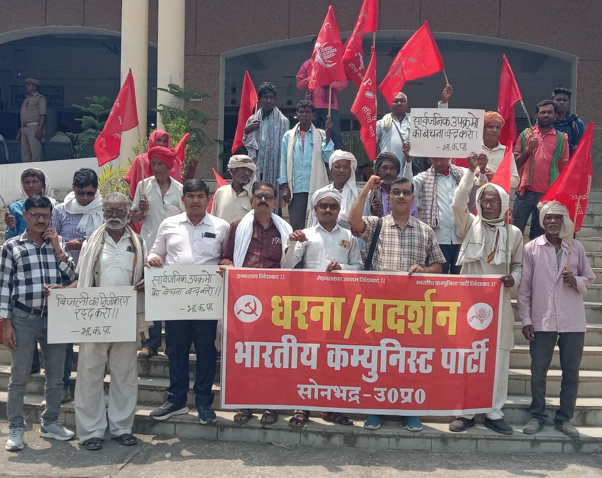 भारतीय कम्युनिस्ट पार्टी के राज्यव्यापी आवाहन पर जिला कौंसिल सोनभद्र के कार्यकर्ताओं ने बिजली के निजीकरण के खिलाफ जुलूस निकाल कर जिला मुख्यालय पर सरकार के खिलाफ नारेबाजी करते हुए जोरदार प्रदर्शन किया और बिजली के निजीकरण की प्रक्रिया पर रोक लगाने, सांकेतिक हड़ताल के दौरान हटाये गए संविदा कर्मियों को बहाल करने, उत्पीड़न की कार्यवाही पर रोक लगाने आदि छ मांगों को लेकर प़दर्शन किया और महामहिम राज्यपाल को संबोधित ज्ञापन जिलाधिकारी को सौंपा।