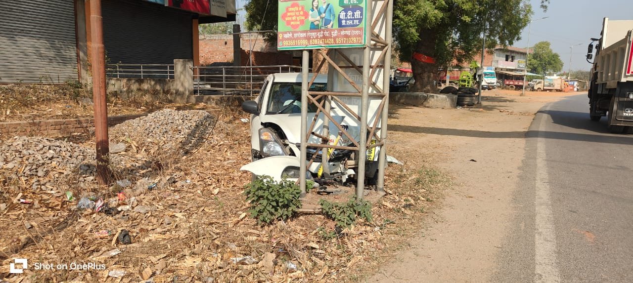 सोनभद्र। वैवाहिक कार्यक्रम से लौट रहे कार सवार दंपति हुए दुर्घटना का शिकार।