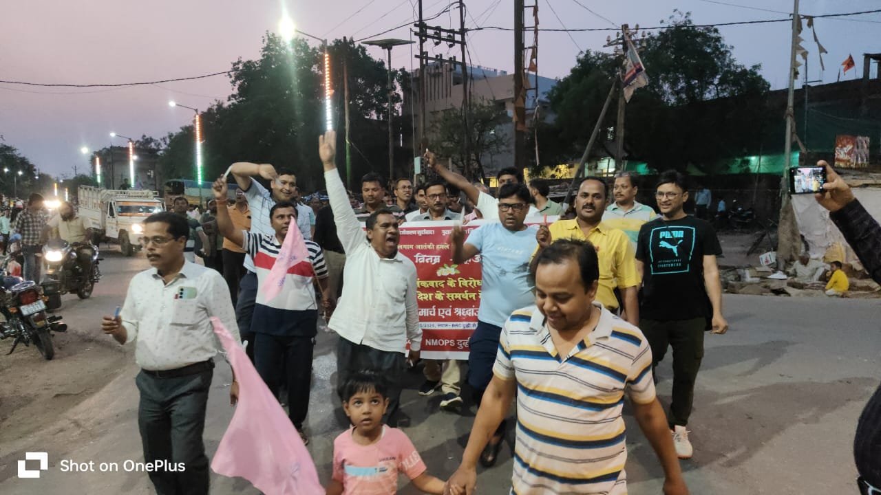 दुद्धी, सोनभद्र। गुरुवार को शाम 6बजे दुद्धी बीआरसी के शिक्षकों ने कैडल मार्च निकालकर पहलगाम में आतंकियों द्वारा मारे गए पर्यटकों को श्रद्धांजलि दी। ब्लॉक संसाधन केंद्र से कैंडल मार्च कस्बे में निकाल कर तहसील तिराहे से होते हुए शिवाजी तालाब पर आकर कैंडल मार्च थम गया और सभा में तबीयत हो गई सभी शिक्षकों ने कैंडल जलाकर पहलगाम हमले में मारे गए भारतीय नागरिकों को श्रद्धांजलि दिया। श्रद्धांजलि देते हुए 2 मिनट का मौन रख उन्हें याद किया गया। आतंकियों के घिनौनी करतूत को लेकर विरोधाभास प्रकट किया।