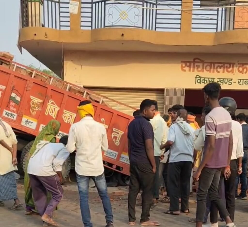 सोनभद्र: ट्रक ने खड़ी ट्रैक्टर टाली में पीछे से मारी टक्कर