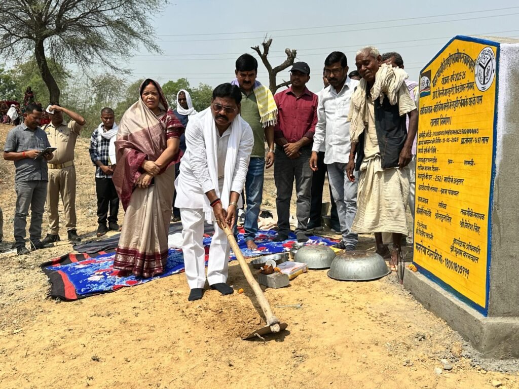 चोपन विकास खंड के बाड़ी बैगा टोला में महात्मा गांधी राष्ट्रीय ग्रामीण रोजगार गारंटी योजनान्तर्गत ग्राम पंचायत द्वारा 9 लाख 97 हजार रुपए की लागत से निर्माण कार्य शुरू कराए जाने वाले तालाब की आधारशिला रखकर मुख्य अतिथि सूबे के राज्य मंत्री ने कहा कि गांव के विकास से ही सूबे का विकास होगा सरकार जल संचयन , जल संरक्षण के लिए गांव-गांव में कार्य कर रही है यह तालाब बनकर तैयार होने के बाद जल संरक्षण के लिए वरदान साबित होगा तालाब का निर्माण होने से जल स्तर भी ठीक रहेगा किसानों को खेती करने में भी सहायक सिद्ध होगा। उन्होंने कहा कि केंद्र व प्रदेश सरकार द्वारा बिना भेदभाव के सभी वर्गों का विकास किया जा रहा है सरकार द्वारा चलाई जा रही तमाम जन कल्याणकारी योजनाओं के अंतर्गत गांव व शहरों में पक्की नाली, सड़क ,हर घर नल का जल, हर घर बिजली पहुंचाने का कार्य तेजी से हो रहा है गांव में भी शहरों जैसी सुविधा मिलना शुरू हो गया है।खंड विकास अधिकारी शुभम बरनवाल ने बताया कि तालाब खुदाई का कार्य शुरू हो गया है मनरेगा योजना 2025-26 निधि से हो रहे तालाब निर्माण कार्य को जल्द ही पूरा कर लिया जाएगा।इस दौरान जुगैल जिला पंचायत सदस्य प्रतिनिधि संजीव त्रिपाठी, गुड्डू गोंड, टाटा चौधरी,पंकज मौर्या,चोपन ब्लाक के एपीओ अवनीश शर्मा ग्राम विकास अधिकारी राहुल सिंह, रोजगार सेवक दिलिप आदि मौजूद रहे।
