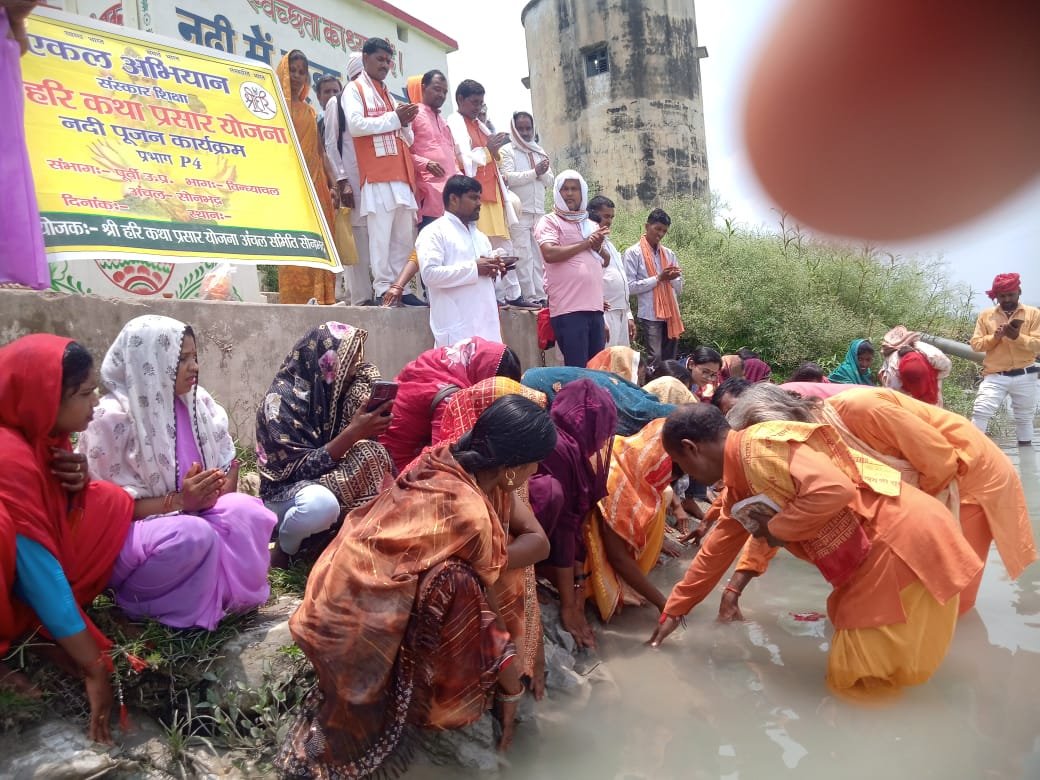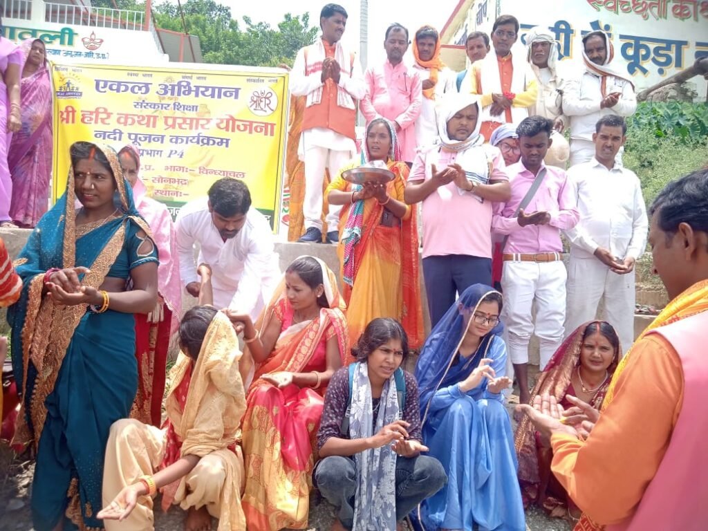 *एकल अभियान संस्कार शिक्षा श्री हरि कथा प्रसार योजना द्वारा आयोजित *नदी पूजन कार्यक्रम* सोन नदी चोपन में गंगा आरती पूजन संपन्न हुआ वहीं रामलीला मैदान में विचार गोष्ठी के माध्यम से अंचल अभियान प्रमुख श्री रमेश जी द्वारा नदी पूजन के महत्व को विस्तार से समझाया ।।