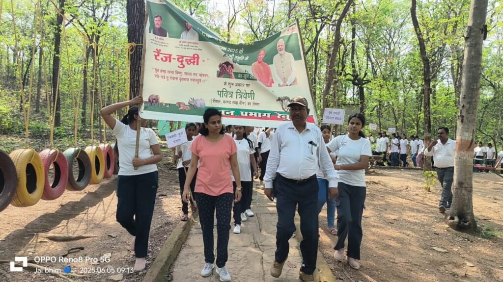 सोनभद्र। जनपद में विश्व पर्यावरण दिवस के उपलक्ष में सीडीओ की अध्यक्षता में “एक पेड़ मां के नाम अभियान चलाया जा रहा है।” वन विभाग एवं जीजीआईसी के बच्चों ने सोनभद्र में स्थित बायोडायवर्सिटी हॉटस्पॉट में पर्यावरण जागरूकता रैली निकाली एवं पर्यावरण संबंधी कई नारे लगाकर लोगों को जागरूक किया।