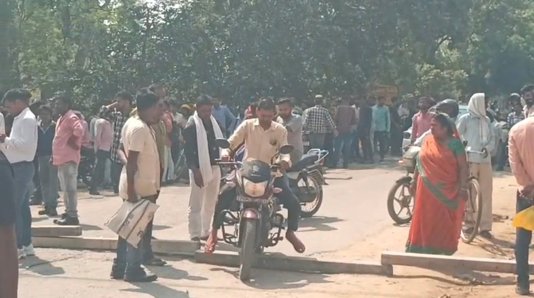 स्थानीय लोग सड़क जाम कर धरने पर बैठे।