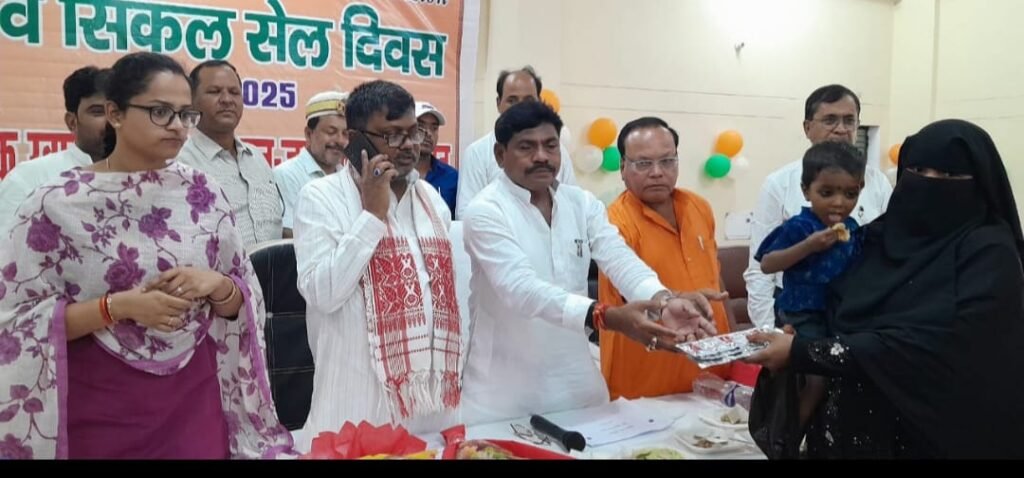विश्व सिकेल सेल दिवस जागरूकता कार्यक्रम को सम्बोधित करते हुए सीडीओ जागृति अवस्थी ने कहा कि सिकल सेल रोग के बारे में लोगों को जागरूक करने के उद्देश्य से 19 जून को विश्व सिकल सेल जागरूकता दिवस मनाया जाता है।इस रोग के बारे में जानकारी होना सभी के लिए जरूरी है।उन्होंने कहा कि समय -समय पर इसकी जाँच कराते रहना चाहिए, उन्होंने कहा कि शादी से पहले भी लड़का -लड़की दोनों को सिकल सेल की जाँच करानी चाहिए।सिकल सेल बीमारी के कारण रक्त कोशिका के आकार अर्धचंद्राकार में बदल जाता है और ये कोशिकाओं को कठोर बना देता है। इसके अतिरिक्त, सिकल के आकार की कोशिकाएं सामान्य आकार की लाल रक्त कोशिकाओं की तरह लंबे समय तक नहीं टिक पाती हैं, जिससे रोगी में लाल रक्त कोशिकाओं की निरंतर कमी बनी रहती है। इस दौरान दर्जनों लोगों को सिकल सेल एनीमिया का कार्ड वितरण किया।