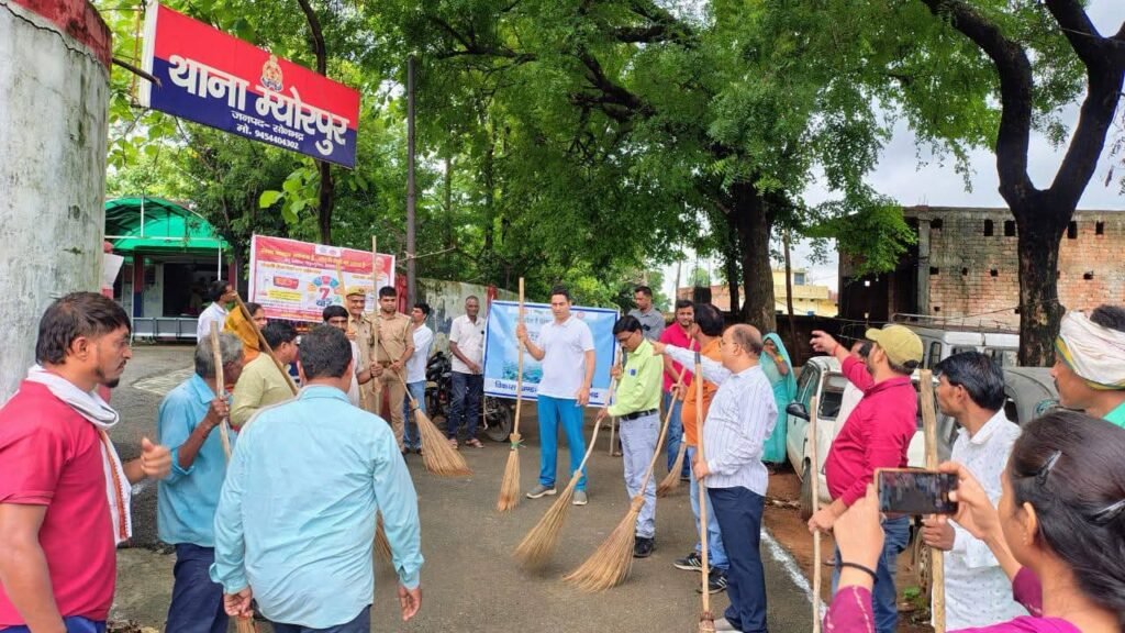 म्योरपुर विकास खंड के ग्राम पंचायत म्योरपुर में सोमवार को स्वच्छ भारत मिशन ग्रामीण के अंतर्गत स्वच्छता एवं प्लास्टिक मुक्त अभियान का आयोजन किया गया। इस अभियान का नेतृत्व एडीओ पंचायत अजय कुमार सिंह ने किया गया, जिनके मार्गदर्शन में ग्रामवासियों, पंचायत प्रतिनिधियों ने उत्साहपूर्वक भाग लिया जिसमें प्राथमिक विद्यालय ,आंगनवाड़ी, प्राथमिक चिकित्सा केंद्र एवं बाजार क्षेत्र में सिंगल यूज बिखरे प्लास्टिक का एकत्रीकरण किया गया तथा झाड़ू लगाकर साफ सफाई किया गया।ब्लॉक प्रमुख मान सिंह गोंड एडीओ पंचायत ने ग्रामीणों को स्वच्छता के महत्व, खुले में शौच की समाप्ति, तथा सिंगल यूज़ प्लास्टिक के दुष्प्रभावों के प्रति जागरूक किया गया। लोगों से अपील की गई कि वे अपने घर व आस-पास स्वच्छता बनाए रखें तथा कचरा अलग-अलग करके निस्तारित करें।अभियान के अंतर्गत वृक्षारोपण कार्यक्रम का भी आयोजन किया गया जिसमें कई प्रकार के छायादार व फलदार पौधे लगाए गए। पौधरोपण के माध्यम से पर्यावरण संरक्षण, वर्षा जल संचयन तथा हरियाली को बढ़ावा देने का संदेश दिया गया। मौके पर प्रभारी निरीक्षक कमल नयन दुबे, ग्राम प्रधान संगीता जायसवाल,अमर केश सिंह,चंदेल,दिनेश गुप्ता, गणेश जायसवाल, सुधीर,मोनू जायसवाल, आंगनबाड़ी ,, स्वच्छता टीम, एवं स्वयं सहायता समूह की महिलाओं ने सक्रिय भूमिका निभाई और ग्रामीणों को पर्यावरण के प्रति जागरूक किया।