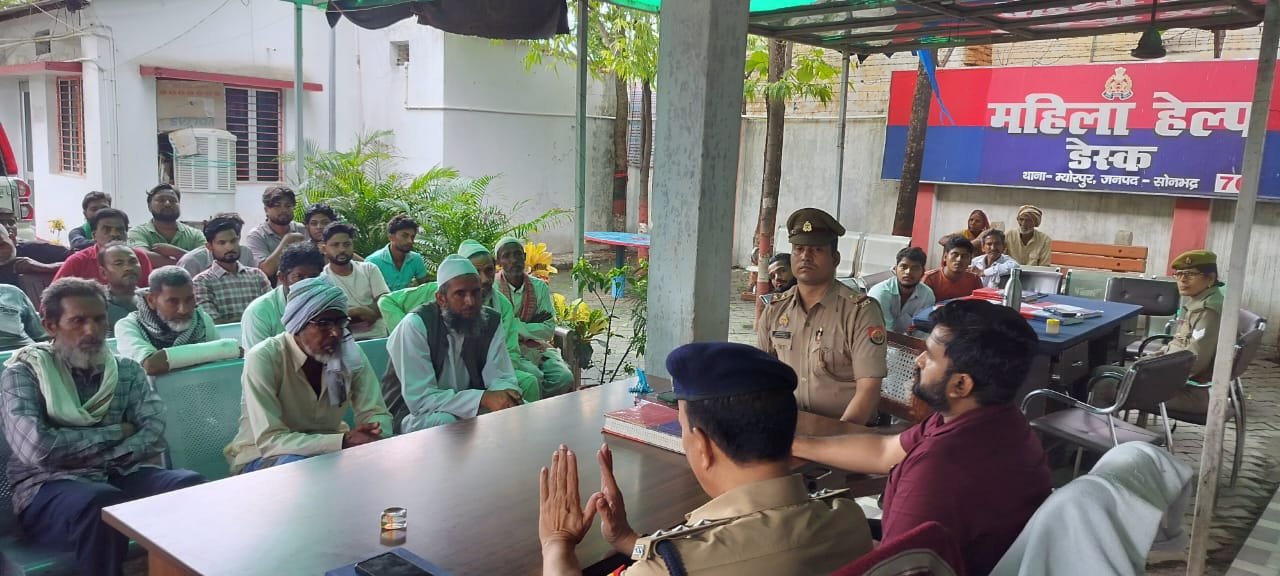 म्योरपुर थाना परिसर मे सोमवार को दुद्धि एसडीएम निखिल कुमार यादव की अध्यक्षा मे शांति समिति की बैठक आहूत की गयी बैठक मे किरवानी, काचन, म्योरपुर के ताजीदारों की मौजूदगी रही उपजिलाधिकारी ने कहाँ की सुरक्षा एव शांति ब्योस्था बनाये रखते हुए मोहर्रम का त्योहारो मनाये किसी भी दशा मे अन्य धर्म सम्प्रदाय के लोग प्रभावित न हो डी.जे की ध्वनि मानक के अनुरूप हो विशेष कर नये उम्र के किशोरो को सायमित रखे ताजिया की ऊचाई किसी भी दशा मे दस फिट से अधिक न रहे ताकि किसी प्रकार की दुर्धटना की आशंका न रहे क्षेत्राधिकारी दुद्धि राजेश कुमार सिंह ने आगाह किया की जुलुस के दौरान किसी तरह के अस्त्र शस्त्र का प्रदर्शन कतई न करे किसी तरह की ब्योधान आने की दशा मे थाना प्रभारी को सूचित करे इस दौरान म्योरपुर थाना प्रभारी कमल नयन दुबे, एस. आई अनंत राय, भाजपा नेता सोना बच्चा अग्रहरी,सदर अयूब अली,खलील अहमद, शाबिर,जाकिर,रवि, छोटन,रफ़ीउल्ला, आदि मौजूद रहे!