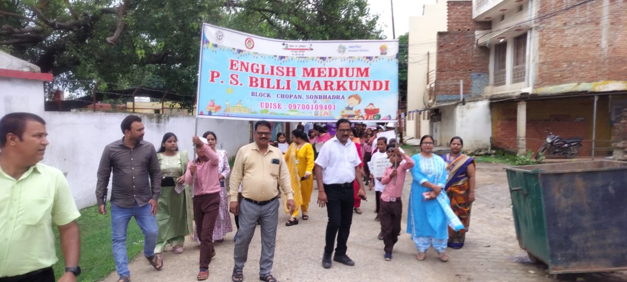 स्कूल चलो अभियान के प्रथम दिवस पर जिला बेसिक शिक्षा अधिकारी मुकुल आनंद पाण्डेय जी के नेतृत्व में विकास खंड स्तरीय स्कूल चलो अभियान की रैली निकाली गई। रैली में प्राथमिक विद्यालय बिल्ली मारकुंडी और उच्च प्राथमिक विद्यालय बिल्ली के सैंकड़ों बच्चों ने प्रतिभाग किया।रैली का शुभारम्भ ब्लॉक संसाधन केंद्र से जिला बेसिक शिक्षा अधिकारी मुकुल आनंद पाण्डेय जी द्वारा हरी झंड़ी दिखाकर किया गया। रैली का संयोजन खंड शिक्षा अधिकारी लोकेश मिश्रा जी द्वारा किया गया।रैली में बच्चों के नामांकन बढ़ाने के लिए बच्चों ने विभिन्न नारे पढ़ी लिखी – लड़की रोशनी है घर की,चलो स्कूल में नाम लिखाए अपना भारत साक्षर बनाए,भर पेट खाना खाएगे – रोज स्कूल जाएंगे,पढ़ ले बिटिया लिख ले बिटिया अक्षर अक्षर चुन ले बिटिया आदि नारे लगाए गए।रैली में एस आर जी विद्यासागर, वरिष्ठ अध्यापक रुद्र प्रसाद मिश्रा,शिप्रा वर्मा,शिलावती यादव,ऋचा पटेल ,सुमन सिंह, सरिता यादव,स्वर्णलता,संध्या , सौम्या,गरिमा,महेश गिरी तथा समस्त बीआर सी स्टाफ द्वारा रैली में प्रतिभाग किया गया।रैली बीआरसी प्रांगण से प्रारंभ होकर विभिन्न मार्ग से होते हुए पुनः बीआरसी चोपन पर संपत हुई।अपने संबोधन में जिला बेसिक शिक्षा अधिकारी महोदय द्वारा शत प्रतिशत बच्चों का नामांकन कराने का आह्वान किया गया।अंत में खंड शिक्षा अधिकारी महोदय द्वारा सबका धन्यवाद करते हुए रैली समाप्त किया गया।