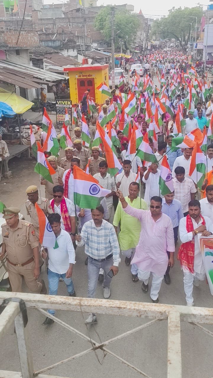 दुद्धी मण्डल में हर घर तिरंगा अभियान के तहत भाजपा कार्यकर्ताओं ने स्वतंत्रता दिवस से पूर्व हाथों में झंडा लेकर तिरंगा यात्रा निकाली। दुद्धी नगर पंचायत स्थित रामलीला मैदान से शुरू हुई भारतीय जनता पार्टी के कार्यकर्ताओं की तिरंगा यात्रा का शुभारंभ भाजपा जिला प्रभारी अनिल सिंह ने तिरंगा झंडा दिखाकर किया। दुद्धी में दो किलोमीटर लंबी तिरंगा यात्रा निकाली गई। जिसमें महिलाओं, युवाओं व वरिष्ठ नागरिकों ने भागीदारी की तिरंगा यात्रा रामलीला मैदान से शुरू होकर दुद्धी नगर भृमण करते हुए पुनः रामलीला मैदान पर पहुंच कर सम्पन्न हुई।तिरंगा यात्रा के समापन पर जिला प्रभारी ने प्रधानमंत्री नरेंद्र मोदी और मुख्यमंत्री योगी आदित्यनाथ के निर्देश को साझा किया। उन्होंने बताया 10 से 12 अगस्त तक पूरे जिले में तिरंगा यात्रा निकाली जा रही उसी क्रम में आज दुद्धी मण्डल में भी यह यात्रा निकली है तथा 13 से 15 अगस्त तक हर घर पर तिरंगा फहराना है। यह अभियान सभी के लिए है, चाहे वह अमीर हो या गरीब,नेता हो या आम नागरिक।वही दुद्धी नगर पंचायत चेयरमैन कमलेश मोहन ने अपने पूरे कर्मचारी व सभासद के साथ इस यात्रा में सहभागिता की इस अवसर पर कार्यक्रम संयोजक मनीष जायसवाल मण्डल अध्यक्ष दीपक शाह ने कहा कि 15 अगस्त की शाम को तिरंगे को सम्मानपूर्वक उतार कर सुरक्षित रखना है। उन्होंने कहा कि प्रधानमंत्री के नेतृत्व में भारत 2047 में विश्व गुरु विकसित राष्ट्र बनेगा। उन्होंने सभी नागरिकों से अपने घरों पर तिरंगा फहराने की अपील की तथा आये हुए समस्त कार्यकर्ताओं का आभार व्यक्त किया।इस अवसर पर इस तिरंगा यात्रा में दुद्धी उप जिलाधिकारी निखिल यादव खण्ड विकास अधिकारी रामविशाल चौरसिया सहायक विकास अधिकारी आशुतोष श्रीवास्तव जिलामंत्री दिलीप पांडे पूर्व मण्डल अध्यक्ष मनोज सिंह बबलू सुमित सोनी कार्यक्रम सह संयोजक विनोद जायसवाल धर्मेंद्र पाल संजू तिवारी अनिल हलुवाई प्रबुद्ध प्रकोष्ठ जितेंद्र चन्द्रवंशी शिवशंकर प्रसाद युवामोर्चा अजय चन्द्रवँशी विकास सोनी विकास मद्धेशिया सूरजदेव प्रसाद मण्डल महामंत्री अंशुमान राय प्रेमनारायण सिंह मोनू गोरखनाथ अग्रहरी आयुष कुमार दीपक जौहरी अल्पसंख्यक मोर्चा अध्यक्ष राफे खान प्रवीण जायसवाल दीवान सिंह मीरा सिंह गोंड़ कलावती देवी सभासद धीरज जायसवाल आमेश सिंह सहित दुद्धी नगरवासी उपस्थित रहें।