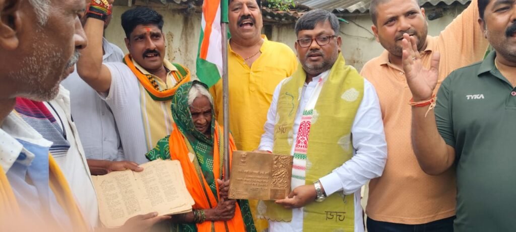 भारतीय जनता पार्टी द्वारा हर घर तिरंगा का शुभारंभ सोनभद्र के सलखन में स्थित स्वतंत्रता संग्राम सेनानियों के स्मारक पर भाजपा जिला अध्यक्ष नन्दलाल गुप्ता के द्वारा साफ सफाई कर ग्राम सभा सलखन के शंकर प्रसाद गोड़ शिवनाथ गोड़ एवं भागवत प्रसाद दुबे स्वतंत्रता संग्राम सेनानी रहे हैं 1942 में अंग्रेजों भारत छोड़ो आंदोलन में प्रत्यक्ष रूप से सहयोग कर अंग्रेजों के दांत खट्टे किए थे अंग्रेज शासन काल में अंग्रेजों की यातनाएं झेलने के बावजूद भी देशभक्ति की भावना से उत्प्रोत रहे भारत छोड़ो आंदोलन के दौरान शंकर गौड़ को नजर बंद किया गया था एवं उन्हीं के साथी शिवनाथ गोंड और भागवत दुबे जी को 3 वर्ष के सजा सुनाई गई थी आज भाजपा जिला अध्यक्ष नंदलाल गुप्ता स्वतंत्रता सेनानी परिवार जनों को घर जाकर किया सम्मानित एवं उनके घर पर तिरंगा झंडा लगाया गया और उनके परिवार जनों से उस समय की परिस्थितियों पर जिला अध्यक्ष जी ने चर्चा किया किस तरह से विषम परिस्थितियों में रहने के बावजूद भी देश प्रेम की जो भावना इन स्वतंत्रता संग्राम सेनानियों के भीतर उससे प्रभावित होकर आजादी के 25 में वर्षगांठ पर तत्कालीन प्रधानमंत्री इंदिरा गांधी जी आप सभी स्वतंत्रता सेनानियों को ताम्र पत्र देकर सम्मानित किया और हमारे क्षेत्र का नाम रोशन किया इस शुभ अवसर पर चोपन मंडल अध्यक्ष भगवान दास संजय केसरी जिला कर समिति सदस्य पर दीपक अग्रवाल डॉक्टर सत्येंद्र जी विकास चौधरी हिमांशु परदेसी सोनू सिंह सिंह जायसवाल जी संतोष जायसवाल जी अरविंद जी राकेश कुमार जी राजेंद्र सिंह लक्ष्मी शंकर गोड जी उपस्थित रहे