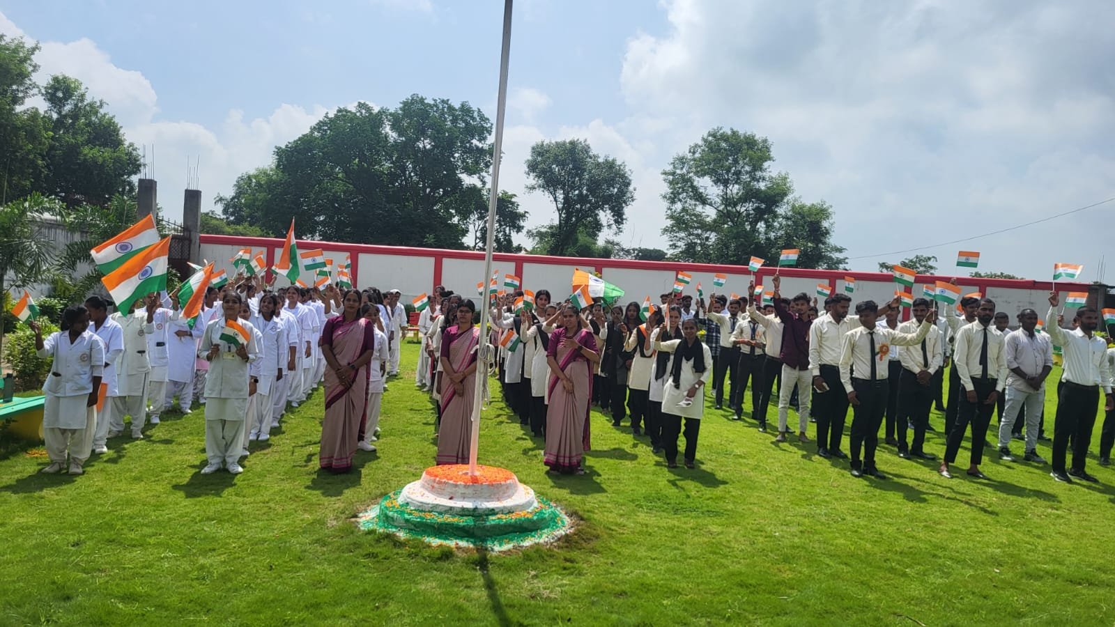 दुद्धी /सोनभद्र। दुद्धी -रेनुकूट मार्ग पर मझौली ग्राम मे स्थित रामनगीना ग्रुप आफ कॉलेज मे आज शुक्रवार को 79 वां स्वतंत्रता दिवस बड़े ही धूमधाम से मनाया गया | जिसमे कॉलेज के छात्र/ छात्राओं ने प्रभात फेरी का जुलूस निकाला , जो संस्था के कैंपस से निकलकर मुख्य मार्गों का भ्रमण करते हुए वापस कालेज प्रांगण मे आया | इस दौरान पूरा क्षेत्र छात्र/ छात्राओं द्वारा लगाए गए देशभक्ति के नारों से गूंज उठा | आपको बता दें कि राम नगीना ग्रुप आफ कॉलेज के छात्र / छात्राओं के द्वारा निकाले गए प्रभात फेरी के जुलूस एवं सांस्कृतिक कार्यक्रम को देखकर आसपास के ग्रामीण लोग भी देशभक्ति के रंग मे सराबोर हो गए | कार्यक्रम मे मौजूद डायरेक्टर आनंद प्रकाश सिंह यादव एवं मुख्य अतिथि पूर्व प्रधान मझौली मोतीलाल गुप्ता ने आजादी के महत्व पर प्रकाश डाला। संस्था के संरक्षक उपेंद्र कुमार यादव ने माँ सरस्वती के चित्र के पास दीप प्रज्वलित कर सास्कृतिक कार्यकम की शुरुआत किया। इसके उपरांत कॉलेज के छात्रों ने देशभक्ति से ओत परोत सांस्कृतिक कार्यक्रम प्रस्तुत कर वहां मौजूद सभी लोगों को देश भक्ति के रंग मे रंग दिया | जबकि कार्यक्रम के अध्यक्षता सुभांगी अग्रहरि ने की। इस मौके पर शिक्षक विवेकानंद, शशांक, दिलीप, राजकिशोर कनौजिया, शुभांगी, प्रियंका,आराधना, मंजू, उर्मिला, सलोनी, शशिकांत यादव, विपिन यादव सहित कॉलेज के अन्य कर्मचारी एवं छात्र/ छात्राओं के साथ बड़ी संख्या मे ग्रामवासी मौजूद रहें |