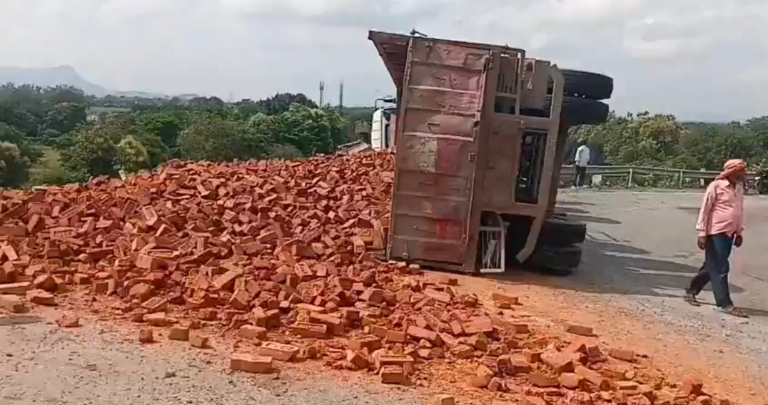 -मारकुंडी घाटी में ईट लदा ट्रक अनियंत्रित होकर पलटा।