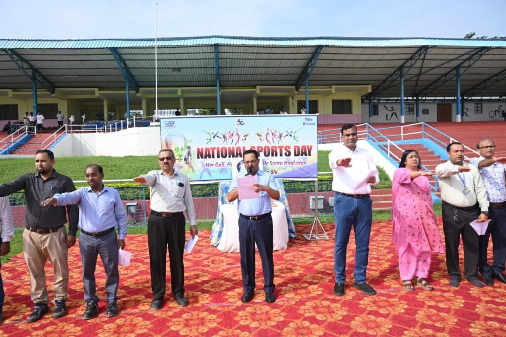 बीजपुर/सोनभद्र। एनटीपीसी रिहंद में 29 से 31 अगस्त 2025 तक “हर गली, हर मैदान, खेले सारा हिंदुस्तान” थीम के अंतर्गत तीन दिवसीय राष्ट्रीय खेल दिवस का आयोजन सोनशक्ति स्टेडियम में बड़े हर्षोल्लास और उत्साह के साथ किया गया। कार्यक्रम का शुभारंभ मुख्य अतिथि,कार्यकारी निदेशक एवं परियोजना प्रमुख रिहंद अनिल श्रीवास्तव ने हॉकी के जादूगर मेजर ध्यानचंद को पुष्पांजलि अर्पित कर किया। इस अवसर पर उन्होंने उपस्थित प्रतिभागियों और दर्शकों को फिट इंडिया शपथ दिलाई तथा जीवन में स्वास्थ्य, अनुशासन और खेल भावना के महत्व पर प्रकाश डालते हुए खेलों को जीवन का अभिन्न अंग बनाने का संदेश दिया।