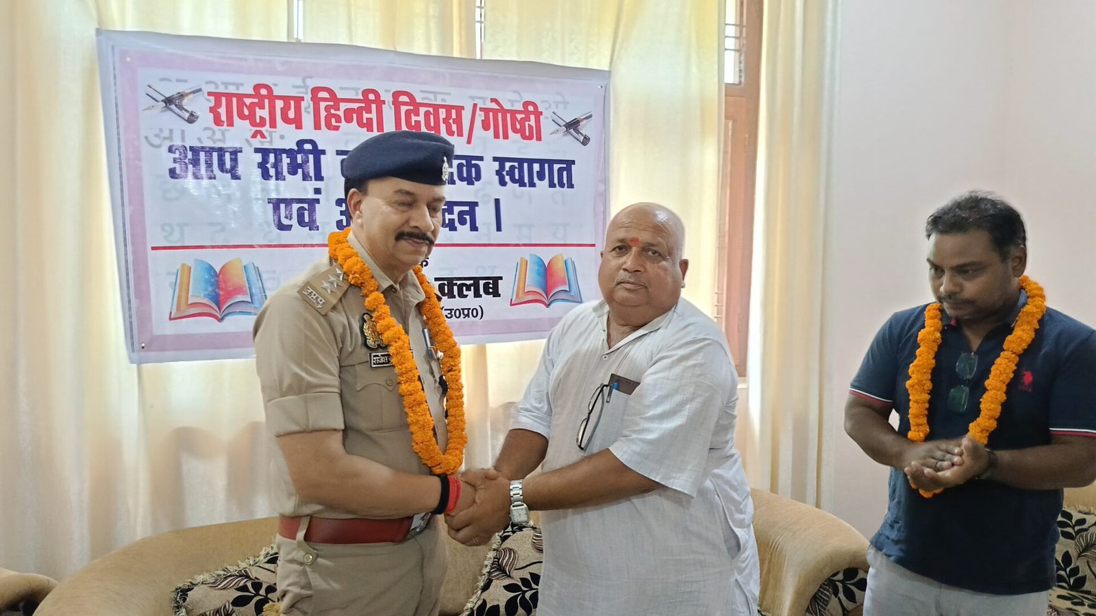 दुद्धी । स्थानीय कस्बे के गेस्ट हाउस में दुद्धी प्रेस क्लब के ओर से राष्ट्रीय हिन्दी दिवस के अवसर पर गोष्ठी का आयोजन किया गया । इस कार्यक्रम के मुख्य अतिथि के तौर पर तहसीलदार दुद्धी अंजनी गुप्ता व क्षेत्राधिकारी दुद्धी राजेश कुमार राय सर्वप्रथम मां सरस्वती जी के तस्वीर पर माल्यार्पण कर दीप प्रज्वलित कर कार्यक्रम का शुभारंभ किया । तत्पश्चात आये हुए मुख्य अतिथि तहसीलदार दुद्धी अंजनी गुप्ता, क्षेत्राधिकारी दुद्धी राजेश कुमार राय व अतिथि रामेश्वर राय का पत्रकार साथियों के द्वारा स्वागत माल्यार्पण, अंगवस्त्रम, मोमेंटो भेंट कर किया गया ।