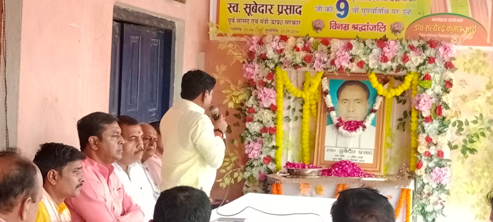 पूर्व सांसद एव पूर्व मंत्री (यूपी सरकार) स्व0 सूबेदार प्रसाद की 9 वी पुण्यतिथि चोपन स्थित मकान पर मनाई गई । श्रंद्धाजलि सभा मे ओबरा विधायक एव समाज कल्याण मंत्री संजीव गोड़ ने कहा कि सूबेदार प्रसाद जी हम सभी के मार्गदर्शक के साथ बीजेपी के कर्मठ और जुझारू नेता थे। सूबेदार जी कोन जैसे दुरूह आदिवासी क्षेत्र से आते थे। सूबेदार जी की यादें हमलोगों के बीच हमेशा याद किया जाएगा। कार्यक्रम में बीजेपी पूर्व जिलाध्यक्ष धर्मवीर तिवारी , पूर्व नगर पालिका अध्यक्ष कृष्ण मुरारी गुप्ता बीजेपी चोपन मण्डल अध्यक्ष संजय केसरी, मोहन कुशवाहा, संजीव गोड़, आरती चौबे, सुनील सिंह, प्रदीप अग्रवाल, राजेंद्र जैन, राहुल सिंह ,हीरालाल वर्मा आदि लोग उपस्थित रहे।संचालन विकास चौबे ने किया एव धन्यवाद ज्ञापन डॉ0 सत्येंद्र आर्य ने किया।