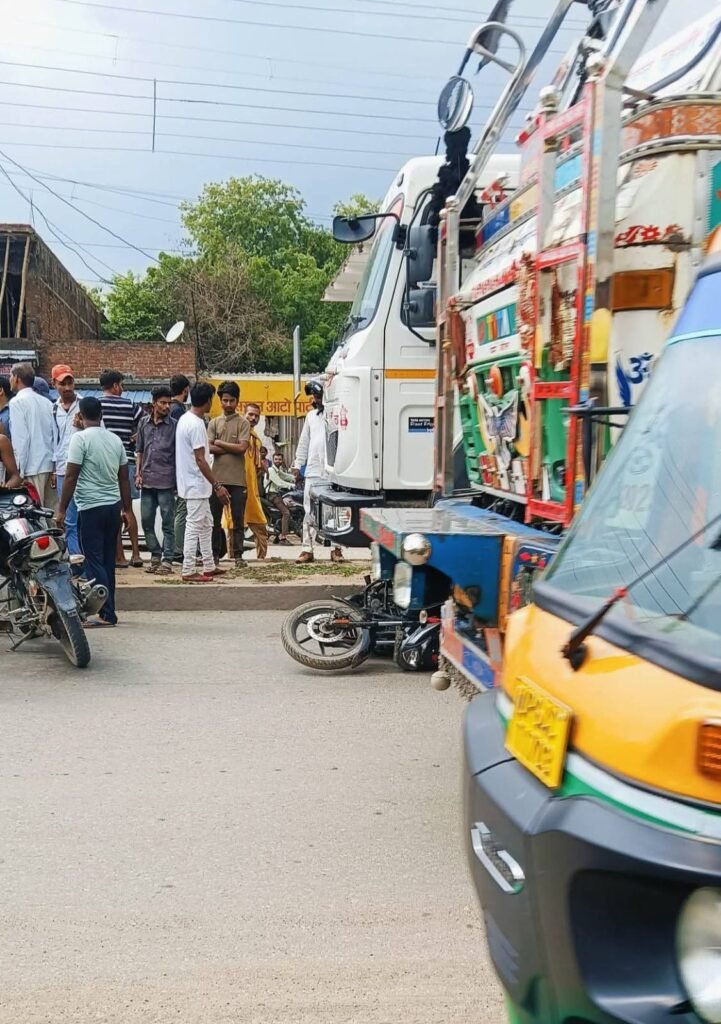 👉 तेज रफ्तार ट्रक ने बाइक सवार सिपाही को टक्कर मारी।