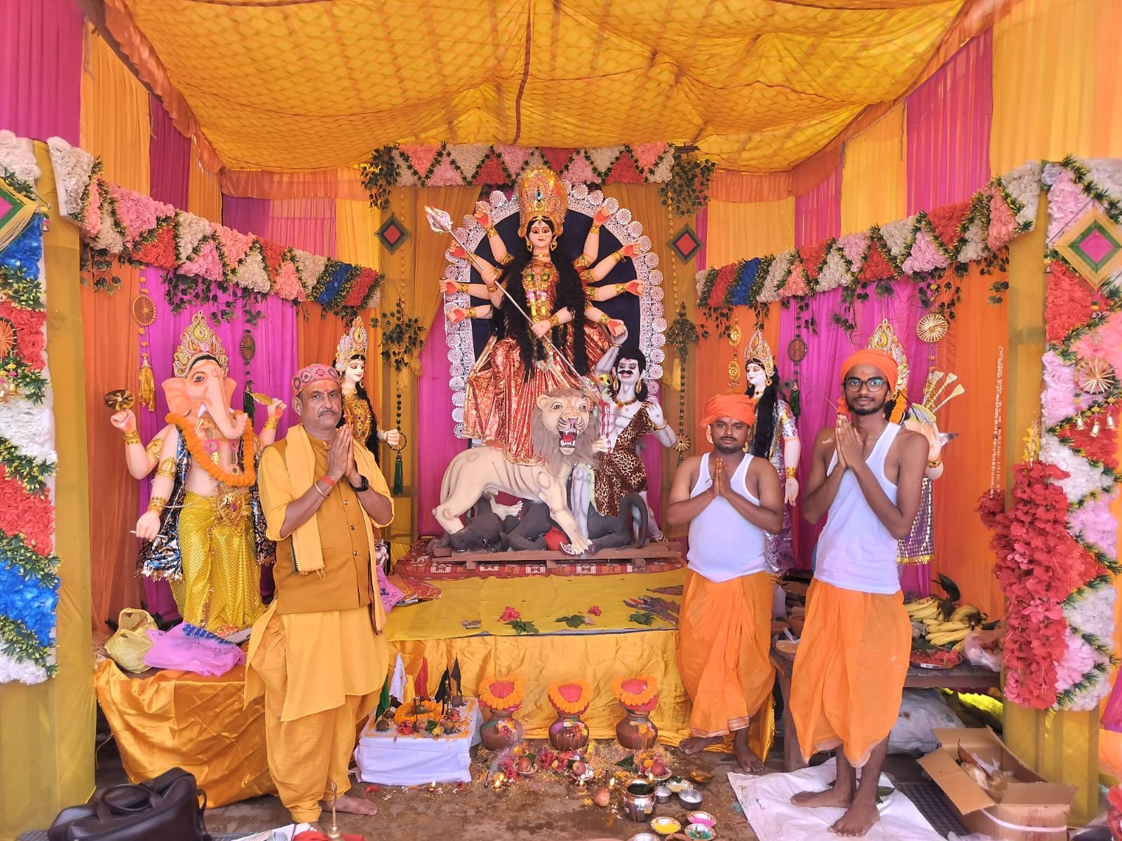 म्योरपुर गुरुद्वारा मोड़ स्थित दुर्गा पंडाल से सोमवार को 351 कि संख्या मे माता बहनो ने कलस यात्रा मे भाग ले दुर्गा पंडाल से पैदल जल भरने एक किलोमीटर दूर जट खेरे नाला पर पंडित मुन्ना पाण्डेय ने विधि विधान से वरुण देव का आवाहन कर मंचोचार कर साथ सभी कलश मे जल भरा जल भरने के बाद कलस यात्रा एक शोभायात्रा मे तब्दील हो गयी पूरा कस्बा भर्मण करने के बाद पुनः दुर्गा पंडाल पहुंच सभी कलस को स्थापित किया गया एव पंडाल मे विधि विधान से नौ देवी दुर्गा का आवाहन कर माता रानी का मुक्ति को स्थापित कर प्राण प्रतिष्ठा किया गया पूजा कर रहे पंडित मुन्ना पाण्डेय ने बताया कि कलस यात्रा निकालने का यह अभिप्राय हैँ किसी भी पूजन यज्ञ आदि जितने भी पूजन होते हैँ उसमे कलस यात्रा सर्वपरी माना गया हैँ नदियों से जल भरकर कर उस जल को पंडाल मे रख वरुण देव का ध्यान लगाया जाता हैँ बिना कलस मे जल भराव के कोई भी अनुष्ठान को पूर्ण नहीं माना जाता इस दौरान कलस यात्रा मे पूर्व ग्राम प्रधान लालता प्रसाद जायसवाल, दीपक सिंह,प्रधान प्रतिनिधि गणेश जायसवाल,सुजीत कुमार सिंह,अमरकेश सिंह कमेटी के अध्यक्ष जीतेन्द्र गुप्ता,कोषाध्यक्ष दिनेस गुप्ता उपाध्यक्ष पंकज सिंह, राहुल जायसवासल, ओम अग्रहरी, अजय अग्रहरी, रामशंकर गुप्ता, संजय, सुनील अग्रहरी (गोटिया जी),एव सैकड़ो कि संख्या मे ग्रामीण एव माता बहने उपस्थित रही