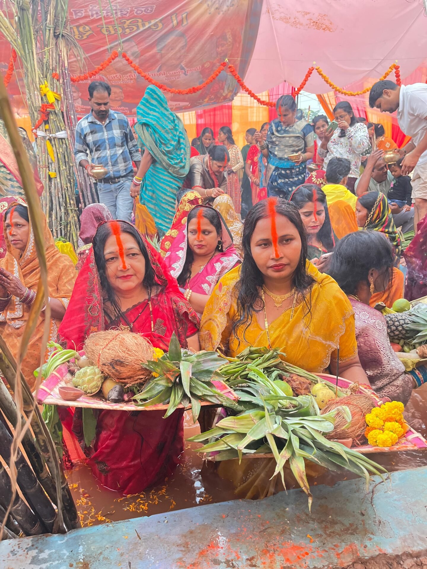अत्यधिक वर्षा होने के कारण सेक्टर बी काली मंदिर के पास मनाए जाने वाले घाट पर व्यवस्था में लगे टेंट तेज हवाओ के कारण उखाड़ गए थे ।