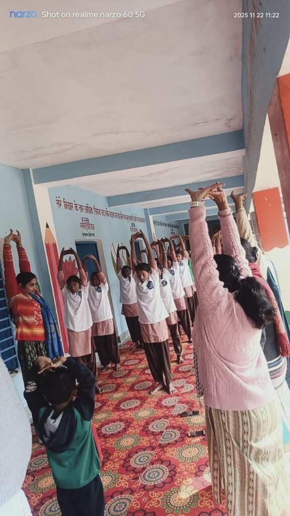 इस शनिवार विद्यालय में योगा सत्र का आयोजन किया गया, जिसमें बच्चों ने बढ़-चढ़कर हिस्सा लिया। एआरपी मयंक दुबे ने प्रशिक्षक के रूप में बच्चों को क्रमवार योगाभ्यास कराया और ध्यान की ओर प्रेरित किया। बच्चों ने इस कार्यक्रम को बेहद उपयोगी बताते हुए सरकार की पहल की सराहना की। कार्यक्रम में शिक्षिकाओं श्वेता, रेखा, प्रीति, अंकित, सुलेखा, रूपा, सरगम सहित सैकड़ों बच्चों ने प्रतिभाग किया। मौके पर कंचन, प्रतिमा, मुन्नी देवी, फरजाना, सुनीता आदि शिक्षक भी उपस्थित रहे।