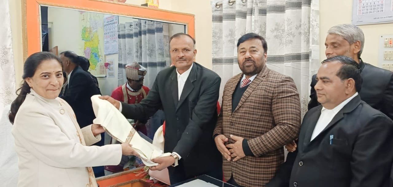 सोनभद्र 13 दिसंबर 2025 डिस्ट्रिक्ट बार एसोसिएशन सोनभद्र के अध्यक्ष जगजीवन सिंह एडवोकेट की अध्यक्षता में वरिष्ठ उपाध्यक्ष पवन कुमार सिंह एडवोकेट महामंत्री प्रदीप कुमार मौर्य एडवोकेट पूर्व अध्यक्ष श्याम बिहारी यादव एडवोकेट एवं राजेश कुमार मौर्य एड सहित न्यायमूर्ति नंदप्रभा शुक्ला प्रशासनिक न्यायाधीश सोनभद्र से प्रतिनिधि मंडल मिला न्यायाधीश महोदय का अध्यक्ष जगजीवन सिंह एड द्वारा पुष्प गुच्च एवं अंग वस्त्र तथा वरिष्ठ उपाध्यक्ष पवन कुमार सिंह एडवोकेट द्वारा भारत का संविधान का मोमेंटो दिया तथा राजेश कुमार मौर्य एवं महामंत्री प्रदीप कुमार मौर्य व अन्य लोग पुष्प गुच्च एवं अंग वस्त्रम भेंट कर स्वागत अभिनंदन किया ! डिस्ट्रिक्ट बार एसोसिएशन सोनभद्र के अध्यक्ष श्री जगजीवन सिंह एडवोकेट द्वारा माननीय प्रशासनिक न्यायाधीश सोनभद्र सोनभद्र से यहां की समस्याओं को अवगत कराया जिसमें मुख्य रूप से न्यायालय भवन जो की रौप में बनने हेतु प्रस्तावित है उसे जल्द से जल्द निर्माण कराया जाए एवं अधिवक्ताओं को बैठने के लिए भवन का निर्माण कराया जाने की भी मांग की! इस पर सुश्री न्यायमूर्ति नंद प्रभा शुक्ला प्रशासनिक न्यायाधीश सोनभद्र के द्वारा सभी मांगों को सौहार्दपूर्ण वातावरण में हल करने का आश्वासन दिया तथा इस अवसर पर अधिवक्ताओं को खासकर नए अधिवक्ताओं को सीखने एवं समझने की बात कही तथा बार बेंच को मिलकर कार्य करने की बात रखी! इस अवसर पर वीरेंद्र कुमार राव, राजेश यादव,प्रेम प्रताप विश्वकर्मा, राम गुल्ली, टीटू गुप्ता, राजेंद्र प्रसाद यादव, मुहम्मद याक़ूब, शाहनवाज आलम खान,रमेश चंद्र सिंह आदि लोग रहे!