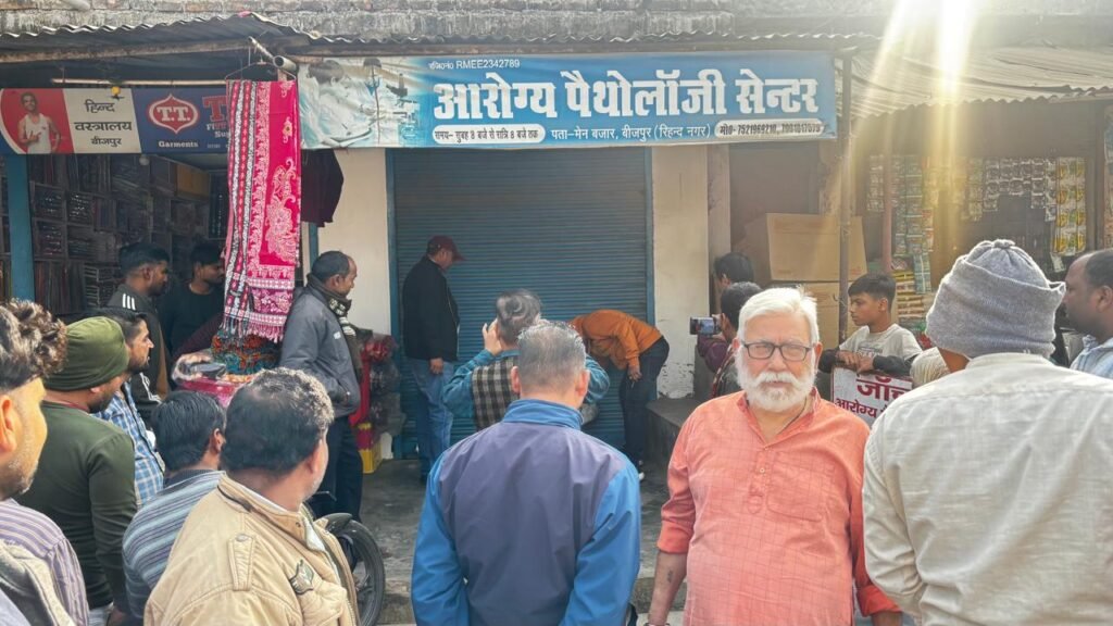 स्वास्थ्य विभाग की टीम के बीजपुर बाजार पहुंचते ही अवैध पैथोलॉजी, कलेक्शन सेंटर और झोलाछाप चिकित्सकों में हड़कंप मच गया। मंगलवार को अचानक हुई जांच की भनक लगते ही कई संचालक अपने-अपने प्रतिष्ठानों के शटर गिराकर मौके से फरार हो गए। डोडहर मोड़, बीजपुर बाजार, बस स्टैंड, डोडहर गेट, जरहा, चेतवा और सेवकाडार सहित आसपास के गांवों के चौराहों पर लंबे समय से सक्रिय झोलाछापों और अवैध पैथोलॉजी केंद्रों पर कार्रवाई की गई। जांच के दौरान टीम ने आरोग्य पैथोलॉजी और अल्फा कलेक्शन सेंटर को सील कर नोटिस चस्पा किया। कार्रवाई के भय से दर्जनों अवैध पैथोलॉजी व झोलाछाप चिकित्सक देर शाम तक अपने प्रतिष्ठान बंद रखकर गायब रहे।