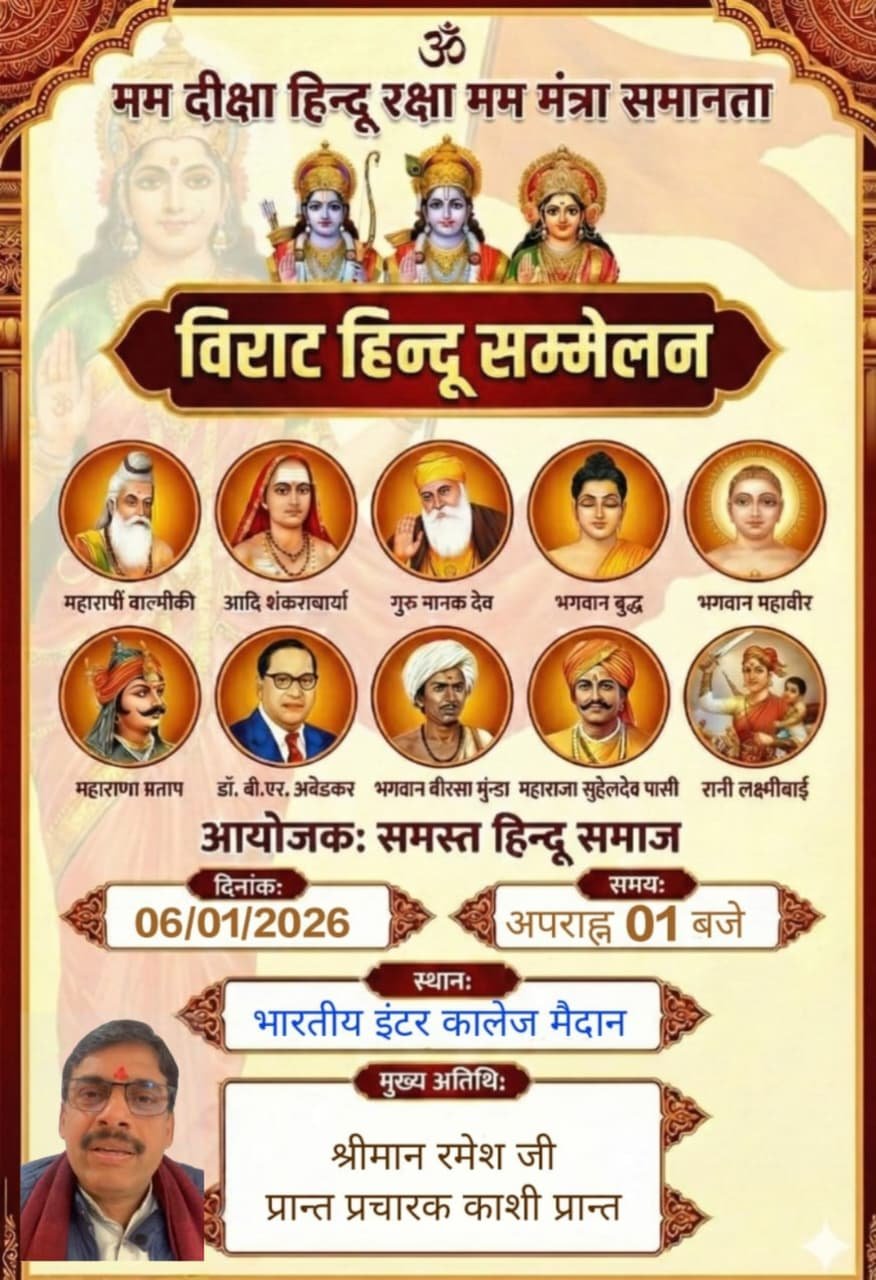 क्षेत्र में सामाजिक समरसता, सांस्कृतिक चेतना और राष्ट्रहित से जुड़े मूल्यों को सुदृढ़ करने के उद्देश्य से आगामी 6 जनवरी 2026 को एक दिवसीय हिंदू सम्मेलन का आयोजन विंढमगंज में किया जाएगा। यह सम्मेलन भारती इंटरमीडिएट कॉलेज, विंढमगंज के खेल मैदान में आयोजित होगा, जिसमें बड़ी संख्या में क्षेत्रीय नागरिकों, समाजसेवियों और युवाओं के शामिल होने की संभावना है।