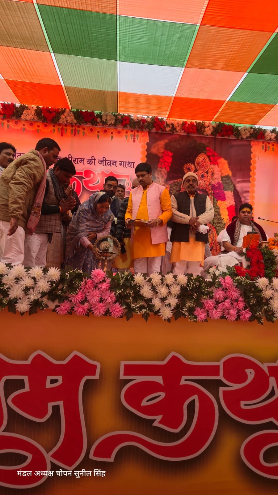 चोपन। प्रीतनगर स्थित रामेश्वर महादेव मंदिर पर शुक्रवार को सप्त दिवसीय श्री राम कथा का शुभारंभ भव्य तरीके से हुआ। इस धार्मिक आयोजन में बड़ी संख्या में श्रद्धालु शामिल हुए और श्रीराम कथा का श्रवण कर धर्मलाभ प्राप्त किया।कथा का शुभारंभ मुख्य अतिथि ब्लाक प्रमुख लीला देवी गोंड़ के उपस्थिति में वैदिक मंत्रोच्चारण और विधिवत पूजा-अर्चना के साथ हुआ। कथा व्यास अंतरराष्ट्रीय कथा वाचक दिलीप कृष्ण भारद्वाज जी द्वारा पहले दिन भगवान श्रीराम से जुड़े प्रसंगों का विस्तारपूर्वक से वर्णन किया गया। श्रद्धालुओं ने बड़े उत्साह और श्रद्धा के साथ कथा का श्रवण किया। आयोजन समिति के अध्यक्ष सुनील सिंह ने बताया कि इस सप्त दिवसीय आयोजन के दौरान रामचरितमानस के विभिन्न प्रसंगों का वर्णन किया जाएगा, जिसमें श्रीराम जन्म,राम-वनगमन, सीता-हरण और लंका विजय जैसे प्रमुख प्रसंग शामिल हैं। इस धार्मिक आयोजन में क्षेत्र के गणमान्य व्यक्तियों सहित सैकड़ों श्रद्धालु उपस्थित रहे। कथा का संचालन मनोज चौबे ने किया। आयोजन समिति ने सभी श्रद्धालुओं से कथा का श्रवण कर धर्मलाभ लेने का आह्वान किया। इस मौके पर प्रथम दिन के यजमान अनिल यादव सप्तनिक रहे। इस मौके पर जिला प्रचारक आलोक जी,वरिष्ठ भाजपा नेता राजा, मिश्रा, मंडल अध्यक्ष संजय केशरी, नवल किशोर चौबे, दयाशंकर सिंह, सुनील तिवारी, श्यामाचरण गिरी, प्रदीप अग्रवाल, जनार्दन बैसवार,रजनीकांत सिंह, गुड्डू सिंह गोंड़,लालजी मिश्रा, विकास चौबे, संदीप पाण्डेय,धर्मेंद्र जायसवाल, बबलू सोनी, अरविंद जायसवाल, सहित सैकड़ों की संख्या में रामकथा प्रेमी मौजूद रहे| सुरक्षा व्यवस्था को लेकर प्रभारी निरीक्षक कुमुद शेखर सिंह मयफोर्स मौजूद रहे|