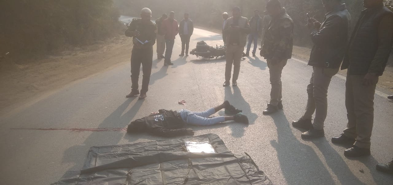सोनभद्र। सड़क हादसे में बाइक सवार युवक की मौके पर मौत।