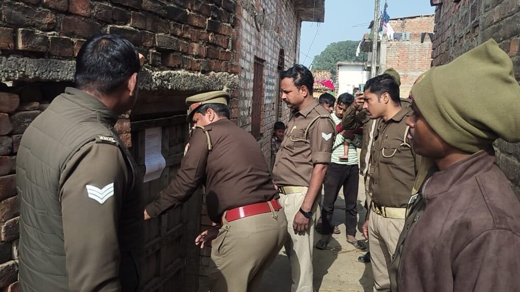 मधुपुर । सुकृत चौकी क्षेत्र के तकिया गाँव निवासी गैंगेस्टर एक्ट में फरार चल रहे अभियुक्त के मकान के दरवाजे पर कोर्ट में हाजिर होने की नोटिस चस्पा की गई, गैंगेस्टर एक्ट में निरुद्ध राजा उर्फ शहरुख पुत्र इकरार लंबे समय से फरार चल रहा है, विशेष न्यायाधीश गैंगेस्टर एक्ट द्वारा जारी समन तामील नहीं हो पाने के कारण कोर्ट द्वारा जारी नोटिस को प्रभारी निरीक्षक थाना चोपन कुमुद शेखर सिंह द्वारा सदल बल तकिया गांव पहुँच कर नोटिस चस्पा की गई। इस दौरान सुकृत चौकी की भी पुलिस डटी रही। मौके पर प्राप्त जानकारी के अनुसार पुलिस ने गांव वालों के सामने इस नोटिस को चस्पा किया।