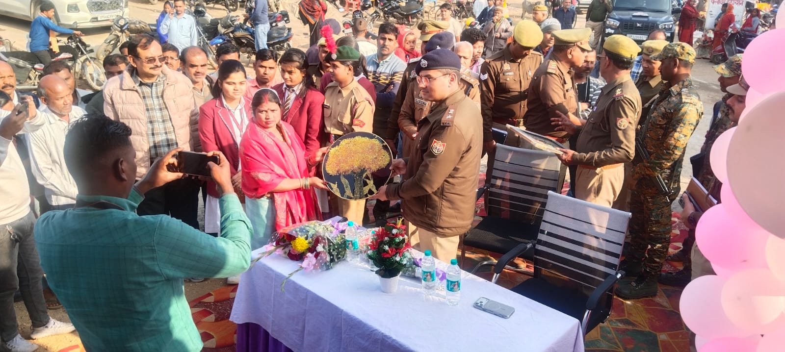 श्रीराम चौक पर आयोजित उद्घाटन कार्यक्रम के दौरान बीजपुर ग्राम प्रधान दशमती गुप्ता एवं दुद्धी क्षेत्राधिकारी राजेश राय ने पुलिस अधीक्षक का पुष्पगुच्छ भेंट कर स्वागत किया।