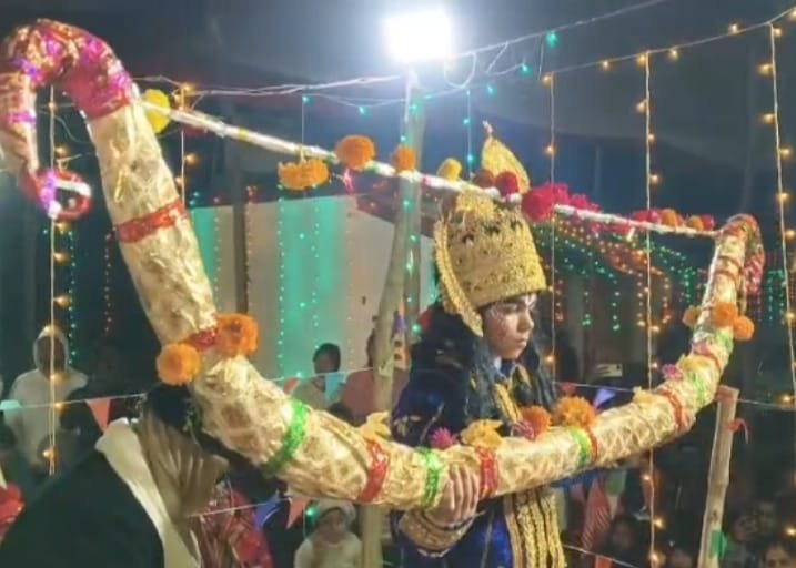चोपन /सोनभद्र – श्री राम लीला के क्रम में धनुष यज्ञ के दिन पूरे मिथिला नगरी में उत्सव का वातावरण रहा समारोह प्रारंभ होने से पूर्व महाराज जनक ने अपने बंदियों को भेज कर महर्षि विश्वामित्र के साथ श्री राम लक्ष्मण को स्वयंवर में बुला लिए विभिन्न देशों से राजा स्वयंवर में पधारे हुए थे सभी उपस्थित राजा गण अपने बाल का गुणगान करते हुए धनुष तोड़ने का झूठा दंभ भर रहे थे इसी बीच रावण एवं बाणासुर का आगमन होता है दोनों का वाक्य युद्ध सबको रोमांचित करता रहा इसी बीच विदूषक राजा ने अपने प्रश्न के माध्यम से सबका मनोरंजन किया सभी राजाओं ने प्रयास किया धनुष नहीं टूटा महाराजा जनक बिल्कुल अधीर होकर कहा कि यह प्रतिज्ञा करके मैंने बहुत बड़ी भूल किया है या तो यह प्रण को छोडूं या सीता को कुमारी रखूं समझ में नहीं आ रहा है क्योंकि धरती वीरों से खाली प्रतीत होती है जनक जी का यह वक्तव्य सुनते ही लक्ष्मण जी क्रोधित हो जाते हैं और कहते हैं कि जिस समाज के मध्य कोई रघुवंशी वीर बैठा हो उसे समझ में यह बात कहना रघुवंशियों का अपमान है इसी बीच महर्षि विश्वामित्र ने प्रभु श्री राम को आदेश दिया धनुष तोड़कर महाराज जनक की प्रतिज्ञा को पूर्ण करो भगवान उठते हैं धनुष तोड़ते हैं सभी देवता प्रसन्न होकर पुष्प वर्षा करते हैं तथा नगर वासी प्रसन्नता से झूम उठते हैं प्रसन्नता पूर्वक माता सीता से प्रभु श्री राम का विवाह कर दिया जाता है। इस पर रहे ।रामलीला समिति के अध्यक्ष सुरेश पांडेय .विद्या शंकर पांडेय . व्यास मुरली तिवारी . डा० राम गोपाल तिवारी .नरसिंह त्रिपाठी . रामजानकी पांडेय .उदय नारायण पांडेय .रामनारायण पांडेय . श्री राम पांडेय . रमा शंकर पांडेय . प्रेम संकर पांडेय . विजय पांडेप विशाल पांडेय .अशोक पांडेय . गोविन्द राम चौबे .संजू त्रिपाठी .सुनील तिवारी .सुनील सिंह .ज्ञानेंद्र पाठक .मनोज चौबे .मनोज सिंह .संतोष मिश्रा .प्रदीप अग्रवाल . व चोपन थाना प्रभारी निरीक्षक अखिलेश मिश्राएवं समस्त पांडेय परिवार ग्रामीण मौजूद रहे ।