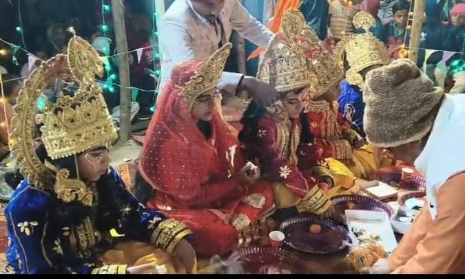 चोपन/ सोनभद्र – सिन्दूरिया मे चल रहे । 100 वर्ष से अधिक संचालित रामलीला गांव के लोगों एवं परिवार के लोगों के लिए अनुष्ठानिक आयोजन के रूप में मनाया जाता है ऐसी मान्यता है भगवान श्री राम के चबूतरे पर माथा टेक कर जो मन्नत कर दी जाती है उसे प्रभु श्री राम पूरा कर देते हैं । इसलिए राम जन्म और धनुष यज्ञ के दिन दूर दराज क्षेत्रों से भी अपनी मन्नत पूर्ण करने के लिए प्रार्थना करने हेतु जिनकी मन्नत पूर्ण हो गई रहती है दर्शन पूजन के लिए प्रत्येक वर्ष आते हैं सीता विवाह के आयोजन के पश्चात एक दिन बाद विशाल भंडारा का आयोजन किया जाता है इसमें बड़ी संख्या में श्रद्धालु भंडारे में प्रसाद ग्रहण करते हैं ।शामिल रहे रामलीला समिति के अध्यक्ष सुरेश पांडेय .विद्या शंकर पांडेय . व्यास मुरली तिवारी .नरसिंह त्रिपाठी .राम जानकी पांडेय .उदय नारायण पांडेय .राम नारायण पांडेय .वीरेंद्र पांडेय .नागेंद्र पांडेय .प्रेम शंकर पांडेय . श्री राम पांडेय . रमा शंकर पांडेय .दिनेशपांडेय .अशोक पांडेय . विशाल पांडेय . राधा रमण पांडेय . रबि पांडेय . श्रीनाथ पांडेय . कमलेश पांडेप . व पांडेय परिवार एवं ग्रामीण मौजूद रहे ।