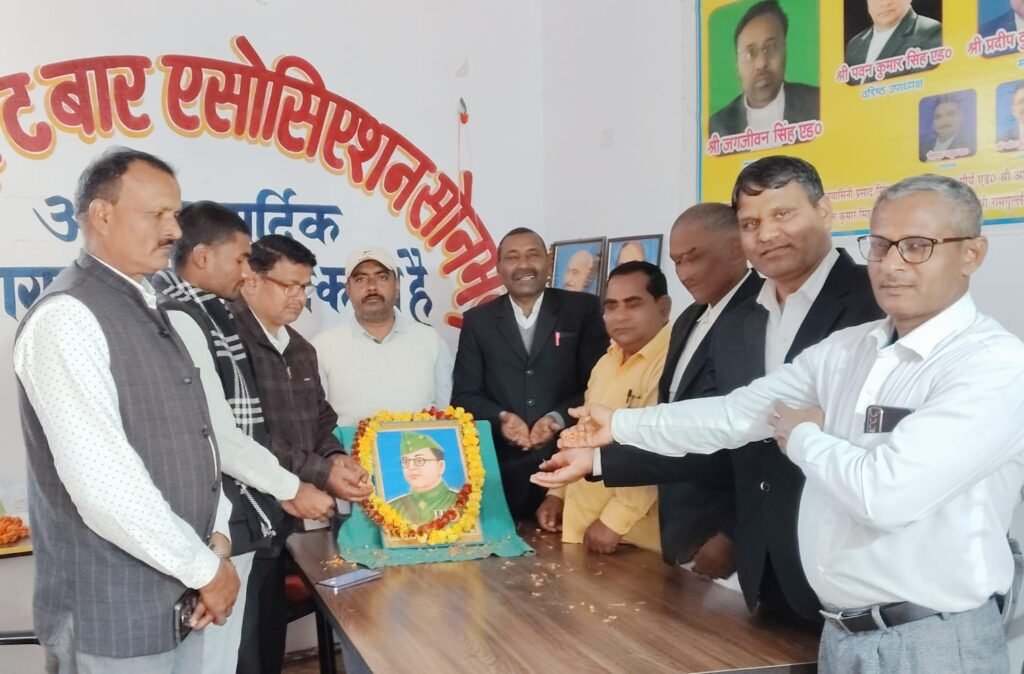 डिस्ट्रिक्ट बार एसोसिएशन के वरिष्ठ उपाध्यक्ष पवन कुमार सिंह एडवोकेट ने कहा कि नेताजी सुभाष चंद्र बोस की जयंती पर हम उनकी वीरता, देशभक्ति और बलिदान को याद करते हैं। उनके नेतृत्व में भारतीय स्वतंत्रता संग्राम ने एक नई दिशा और ऊर्जा प्राप्त की। नेता जी सुभाष चंद्र बोस ने आजाद हिंद फौज के माध्यम से भारतीय सैनिकों को संगठित कर ब्रिटिश शासन के खिलाफ एक मजबूत मोर्चा तैयार किया। उनकी जयंती पर हम उनके आदर्शों और विचारों को अपने जीवन में उतारने का संकल्प लेते हैं। महामंत्री प्रदीप कुमार मौर्य एडवोकेट ने कहा कि नेताजी सुभाष चंद्र बोस का जीवन और कार्य भारतीय इतिहास में एक महत्वपूर्ण स्थान रखता है। उनका जन्म 23 जनवरी 1897 को ओडिशा के कटक में हुआ था। सुभाष चंद्र बोस ने अपनी शिक्षा कोलकाता और कैम्ब्रिज विश्वविद्यालय में पूरी की। सुभाष चंद्र बोस ने भारतीय स्वतंत्रता संग्राम में महत्वपूर्ण भूमिका निभाई। उन्होंने युवाओं को संगठित कर ब्रिटिश शासन के खिलाफ एक मजबूत मोर्चा तैयार किया। सुभाष चंद्र बोस ने आजाद हिंद फौज की स्थापना की और ‘चलो दिल्ली’ का नारा दिया। गोष्ठी की अध्यक्षता वरिष्ठ अधिवक्ता हरि प्रसाद यादव व संचालन वरिष्ठ अधिवक्ता राजेश कुमार मौर्य ने किया।