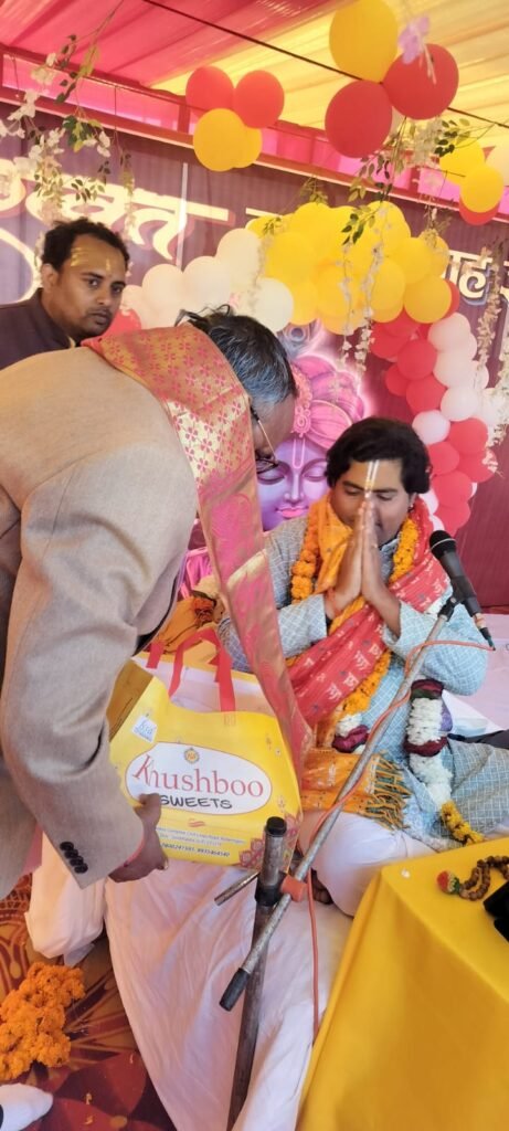 नराकार कथा को आगे बढ़ाते हुए कहा कि देवकी बासुदेव पर हो रहे अत्याचारों को देखकर भगवान ने देवकी के अष्टम पुत्र के रूप में अवतार लिया। जब भगवान बाल रुप् मे हुए और बसुदेव जी ने उन्हें गोद मे लिया तो वासुदेव जी की हथकड़ी बेड़ी अपने आप ही टूट गई और प्रहरी सो गए, पूरा कारागार शांत हो गया, चारों ओर शांति छा गई, यमुना पार करके बालकृष्ण को नन्द बाबा के यंहा पहुँचाया और वहां उसी समय भगवान की माया ही कन्या रूप में अवतार ले कर आई है, जिसे लेकर वासुदेव जी कारागार में आये और कन्या के कारागार में पहुँचते ही कन्या जोर जोर से रोने लगी, सारे प्रहरी जग गए, हो हल्ला मच गया, कंस ने मारना चाहा, कन्या आकाश में उड़ गई। आकाशवाणी किया कंस तुम्हे मारने वाला ब्रज में जन्म ले चुका है और वही देवी रुपी कन्या विंध्याचल पर्वत पर जाकर विंध्यवासिनी के नाम से प्रतिष्ठित हुई। अंत मे इस कथा का आशय बताते हुए महराज जी ने कहा ज़ब हम भगवान को पा लेते हैं, सामाजिक पारिवारिक बंधन से हम मुक्त हो जाते हैं और जीवन मे शांति छा जाती है, लेकिन जब हम माया को पकड़ते हैं तो पारिवारिक सामाजिक बंधन रुपी हथकड़ी, वेड़ी पड़ा जाती है। सुन्दर सुन्दर भजन सुनकर श्रोता झूम उठे। इस अवसर पर मुख्य यजमान पवन कुमार मिश्र, जिला जज मोटर दावा दुर्घटना अधिकरण गाजीपुर संजय हरि शुक्ल, सदर विधायक भूपेश चौबे, विनोद चौबे, महेंद्र प्रसाद शुक्ल एडवोकेट, राजेश कुमार पाठक एडवोकेट, डॉ सुरेश गुप्ता सहित भक्तगण,माताएं, बहनें, बच्चे मौजूद रहे।