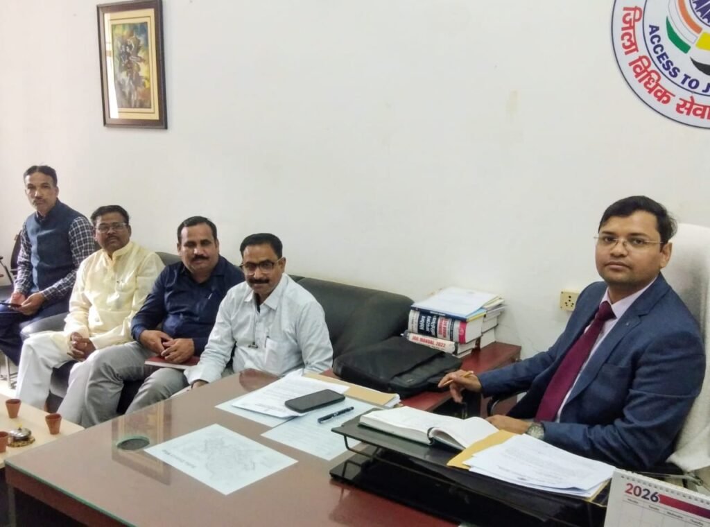 सोनभद्र । राष्ट्रीय विधिक सेवा प्राधिकरण नई दिल्ली व राज्य विधिक सेवा प्राधिकरण लखनऊ की मंशानुरूप, निर्देश अनुपालन में 22 फरवरी 2026 को पंचायत रिसोर्स सेंटर (विकास भवन, कलेक्ट्रेट) सोनभद्र में आयोजित होने वाली बहुउद्देशीय मेगा/वृहद विधिक सहायता एवं सेवा शिविर की बैठक गुरुवार 19 फरवरी को सचिव की अध्यक्षता में आहूत की गयी। उक्त बैठक में सलन बागे, एल०डी०एम०, विनय कुमार सिंह ए०डी०आई०ओ० सूचना, राजेश कुमार सिंह, ए०डी०पी०आर०ओ०, राजेश कुमार चौधरी, अपर जिला पंचायत अधिकारी, शरद प्रभात श्रीवास्तव, डिप्टी मैनेजर एस०बी०आई० अनुराग सिंह, जे०ई० डूडा विभाग एवं समस्त चीफ ब्यूरो, सोनभद्र की उपस्थिति रही