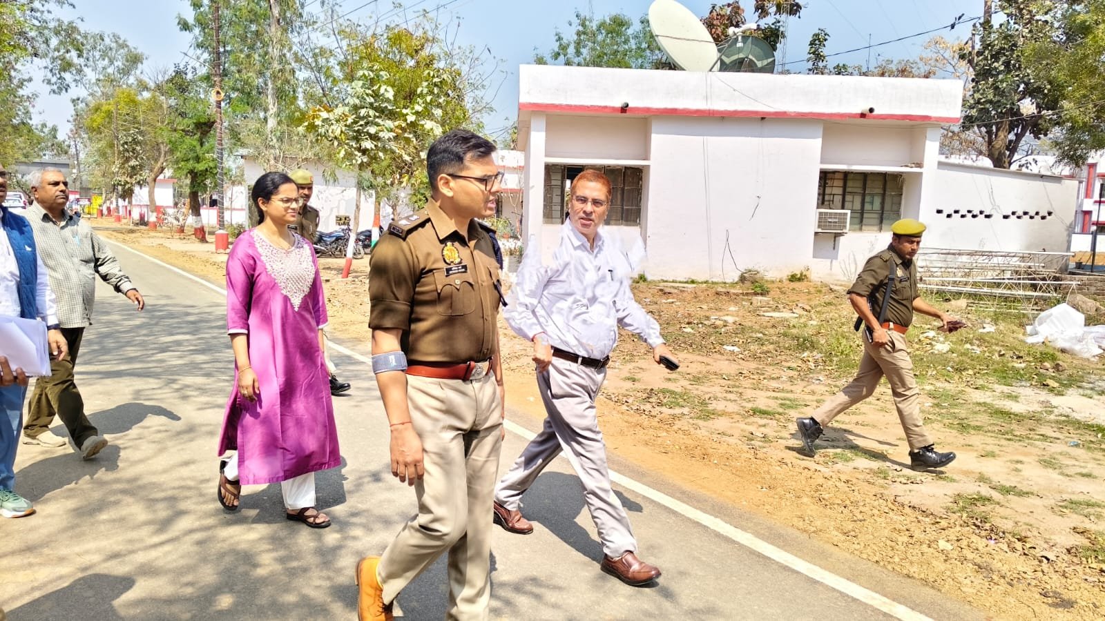 दोनो अधिकारियों ने पुलिस लाइन हेलीपैड स्थल का स्थलीय निरीक्षण किया।