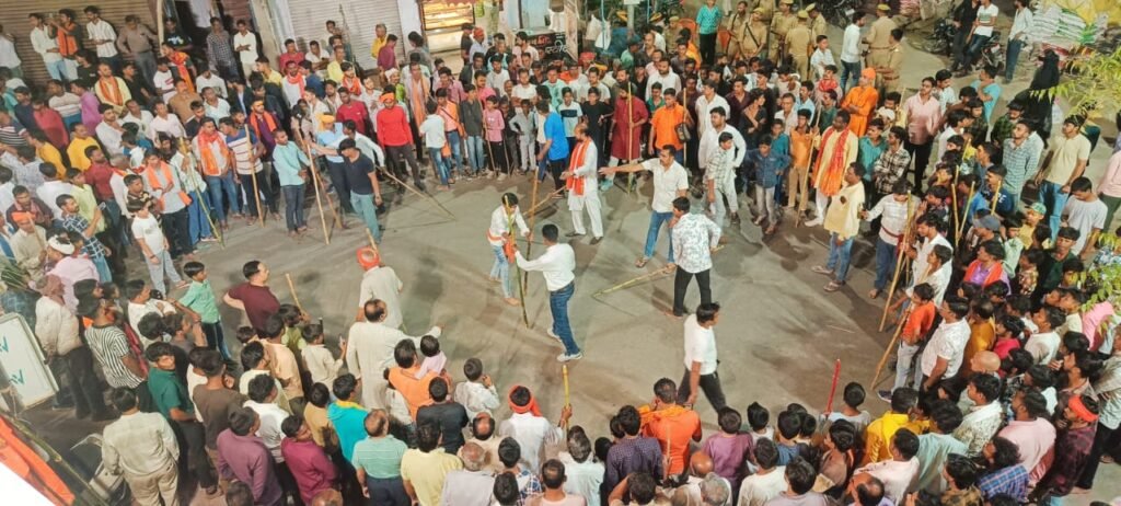 दुद्धी,सोनभद्र- तहसील मुख्यालय एवं आसपास के गांवों में संचालित जय बजरंग अखाड़ा समिति के अखाड़ों के बजरंगीयों ने गुरुवार की रात संकट मोचन मंदिर के सामने अपने शौर्यता का जमकर प्रदर्शन किया| मुख्य चौक पर आयोजित इस कार्यक्रम में शामिल होने के लिए नगर के अलावा आसपास के गांवों के भी दर्जनों अखाड़ा के लोगों ने बढ़ चढ़ कर प्रतिभाग किया| तहसील मुख्यालय पर इस दौरान सुरक्षा के पुख्ता इंतजाम के लिए पीएसी के साथ भारी संख्या में पुलिस फ़ोर्स को चप्पे चप्पे पर लगाया गया था |