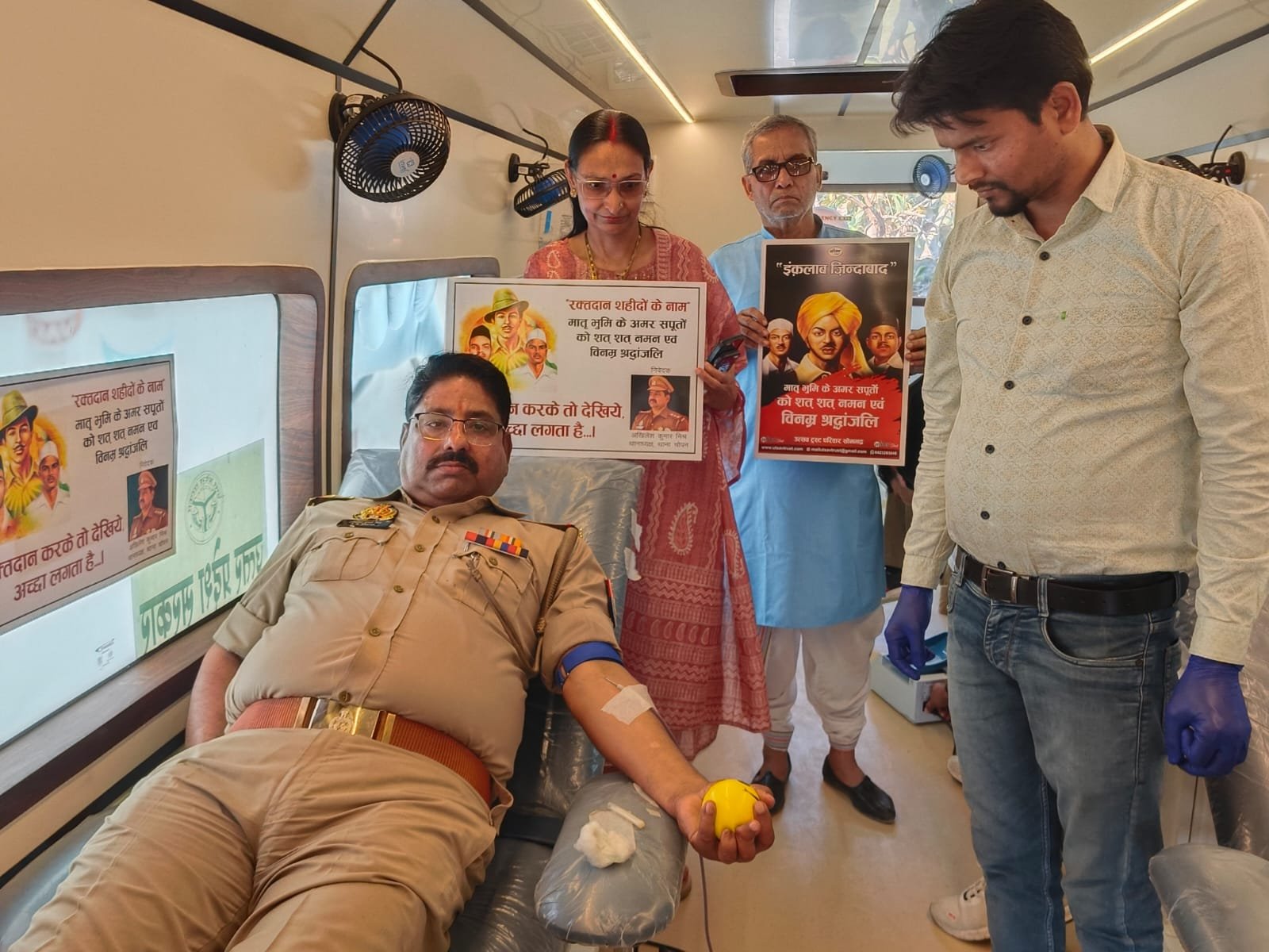 चोपन/ सोनभद्र : शहीद दिवस की पूर्व संध्या पर थाना चोपन परिसर में एक अनोखी पहल देखने को मिली, जहां स्वैच्छिक रक्तदान शिविर आयोजित कर शहीद भगत सिंह, राजगुरु और सुखदेव को सच्ची श्रद्धांजलि दी गई। उत्सव ट्रस्ट एवं थाना चोपन के संयुक्त तत्वावधान में आयोजित इस शिविर में कुल 17 लोगों ने पंजीकरण कराया, जिसमें से 9 लोगों ने रक्तदान किया। कार्यक्रम का शुभारंभ थानाध्यक्ष अखिलेश कुमार मिश्र ने स्वयं रक्तदान कर किया। इस दौरान शहीदों को पुष्प अर्पित कर, दीप प्रज्वलित कर श्रद्धांजलि दी गई और ‘इंकलाब जिंदाबाद’, ‘भारत माता की जय’ एवं ‘वंदे मातरम’ के नारों से वातावरण गूंज उठा। विशेष बात यह रही कि जिले में पहली बार किसी थाना परिसर में इस प्रकार का स्वैच्छिक रक्तदान शिविर आयोजित किया गया। थाना चोपन के पुलिसकर्मियों के साथ स्थानीय नागरिकों ने भी बढ़-चढ़कर हिस्सा लिया। रक्तदान करने वालों में थानाध्यक्ष अखिलेश कुमार मिश्र, सिपाही राहुल यादव, एचएम बिंदुपाल सहित अन्य लोग शामिल रहे।