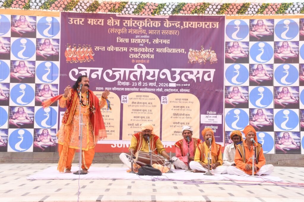 सोनभद्र। उत्तर मध्य क्षेत्र सांस्कृतिक केंद्र, संस्कृति मंत्रालय, भारत सरकार एवं जिला प्रशासन सोनभद्र के संयुक्त तत्वावधान में, संत कीनाराम स्नातकोत्तर महाविद्यालय, राबर्ट्सगंज के सहयोग से आयोजित तीन दिवसीय जनजातीय उत्सव का भव्य समापन बुधवार को उत्साह और उमंग के साथ संपन्न हुआ। कार्यक्रम ने क्षेत्र की समृद्ध लोक एवं जनजातीय परंपराओं को जीवंत कर दिया।