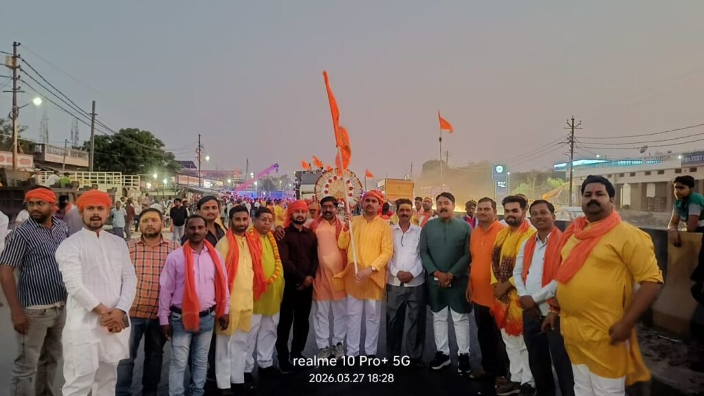 चोपन (सोनभद्र): मर्यादा पुरुषोत्तम भगवान श्री राम के जन्मोत्सव रामनवमी के पावन अवसर पर शुक्रवार को चोपन नगर पूरी तरह भगवामय हो गया। स्थानीय रामभक्तों के तत्वावधान में नगर में भव्य शोभायात्रा निकाली गई, जिसमें आस्था, उत्साह और भक्ति का अद्भुत संगम देखने को मिला। शोभायात्रा का शुभारंभ नगर के कैलाश मंदिर पर वैदिक मंत्रोच्चार एवं विधि-विधान से पूजन-अर्चन के साथ हुआ। यात्रा में भगवान श्री राम, माता सीता, लक्ष्मण एवं संकटमोचन हनुमान की सजीव एवं मनमोहक झांकियां आकर्षण का मुख्य केंद्र रहीं। डीजे पर बज रहे राम भजनों और “जय श्री राम” के गगनभेदी नारों से पूरा नगर भक्तिमय वातावरण में डूबा नजर आया। शोभायात्रा नगर के विभिन्न प्रमुख मार्गों से होते हुए निकाली गई। पूरे मार्ग को भगवा ध्वजों से भव्य रूप से सजाया गया था। जगह-जगह स्थानीय निवासियों एवं व्यापारियों द्वारा पुष्प वर्षा कर यात्रा का स्वागत किया गया। कई स्थानों पर श्रद्धालुओं के लिए शरबत, फल एवं प्रसाद वितरण की भी व्यवस्था की गई थी। हर वर्ष की भांति इस वर्ष भी नगर के आर्य समाज मोड़ पर सामाजिक संगठनों द्वारा जलपान की विशेष व्यवस्था की गई थी,सुरक्षा व्यवस्था को लेकर प्रशासन पूरी तरह मुस्तैद रहा। चोपन थाना प्रभारी अखिलेश मिश्रा के नेतृत्व में भारी पुलिस बल तैनात किया गया था। संवेदनशील चौराहों एवं प्रमुख स्थलों पर पुलिस की पैनी नजर बनी रही, जिससे यातायात सुचारू बना रहा और कार्यक्रम शांतिपूर्ण ढंग से संपन्न हुआ। प्रशासनिक अधिकारियों ने भी मौके पर पहुंचकर सुरक्षा व्यवस्था का जायजा लिया।शोभायात्रा में युवाओं के साथ-साथ महिलाओं एवं बच्चों ने भी बढ़-चढ़कर भाग लिया। पारंपरिक वेशभूषा में सजे श्रद्धालु हाथों में भगवा ध्वज लिए भगवान श्री राम की भक्ति में लीन नजर आए। पूरे आयोजन के दौरान नगर में उत्सव जैसा माहौल बना रहा, जिसने चोपन की धार्मिक एवं सांस्कृतिक एकता की सुंदर मिसाल पेश की। इस मौके पर रामनवमी शोभायात्रा के अध्यक्ष धर्मेश जैन,सुरेश जायसवाल,जितेंद्र जायसवाल,सुनील सिंह,राजन जायसवाल,मंडल अध्यक्ष संजय केशरी,राहुल सिंह,सत्यप्रकाश तिवारी,अजय सिंह,अजय पांडा,मनीष सिंह,घनश्याम चौधरी,नरेश यादव,अंकित पांडेय,नागेन्द्र यादव,विनीत जाटव,दिव्यविकास सिंह,अनिल जायसवाल इत्यादि लोग उपस्थित रहे।