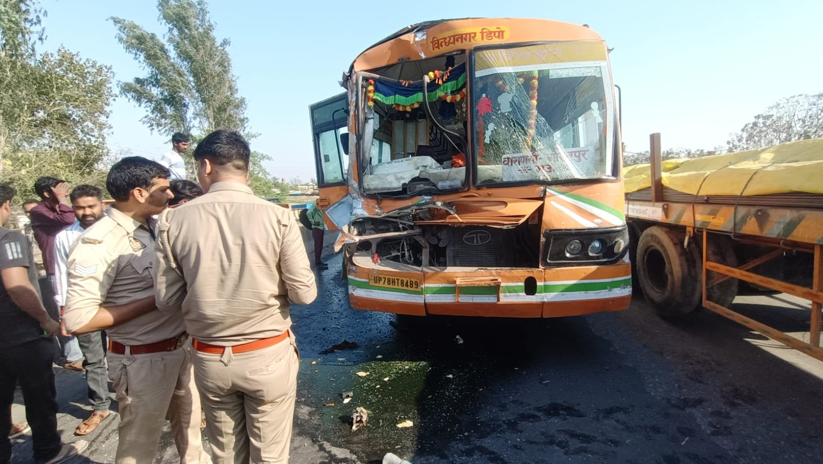 सोनभद्र। जनपद के रावर्ट्सगंज कोतवाली अंतर्गत सुकृत पुलिस चौकी क्षेत्र के मधुपुर में वाराणसी शक्तिनगर मुख्यमार्ग पर बने फ्लाईओवर पर सोनभद्र से वाराणसी जा रही परिवहन निगम की बस ने आगे जा रही ट्रक में पीछे से जोरदार टक्कर मार दी। अचानक हुई टक्कर से कई सवारियों के सिर और चेहरे आगे की सीट से टकरा कर चोटिल हो गये तो कुछ लोगों के सीर फट गया। वहीं बस का अगला हिस्सा दबने के कारण चालक सीट में फंस गया जिसे काफी मशक्कत के बाद निकाला गया। सुचना के बाद सुकृत चौकी प्रभारी मानवेन्द्र सिंह व उनकी टीम मौके पर पहुंचकर राहत व बचाव कार्य में जुट गए। पुलिस व स्थानीय लोगों की मदद से सभी घायलों को सामुदायिक स्वास्थ्य केंद्र मधुपुर में भर्ती कराया गया, जहां उपचार के बाद सभी को अपने गंतव्य भेज दिया गया। इस घटना में चालक श्याम सुंदर मिश्र पुत्र चंद्रशेखर मिश्र निवासी सैदपुर गाजीपुर, अलीशा खान पुत्री बाबूखान निवासी राबर्ट्सगंज, बिष्णु कुमार मौर्य पुत्र विजय नारायण मौर्य निवासी इंदिरा नगर चंदौली, नेहा सिंह पुत्री जयनारायण सिंह, निवासी हिंडाल्को कालोनी रेनुकूट, स्मृति निवासी राबर्ट्सगंज, अशोक केशरी पुत्र स्व रमेश केशरी निवासी राबर्ट्सगंज, अख्तरी बेगम पत्नी जमील शाह, हमीद नगर राबर्ट्सगंज सहित दर्जनों लोगों को चोटें आयी। वहीं मौके से ही दूसरी बस के द्वारा लोगों को आगे छोड़ा गया।