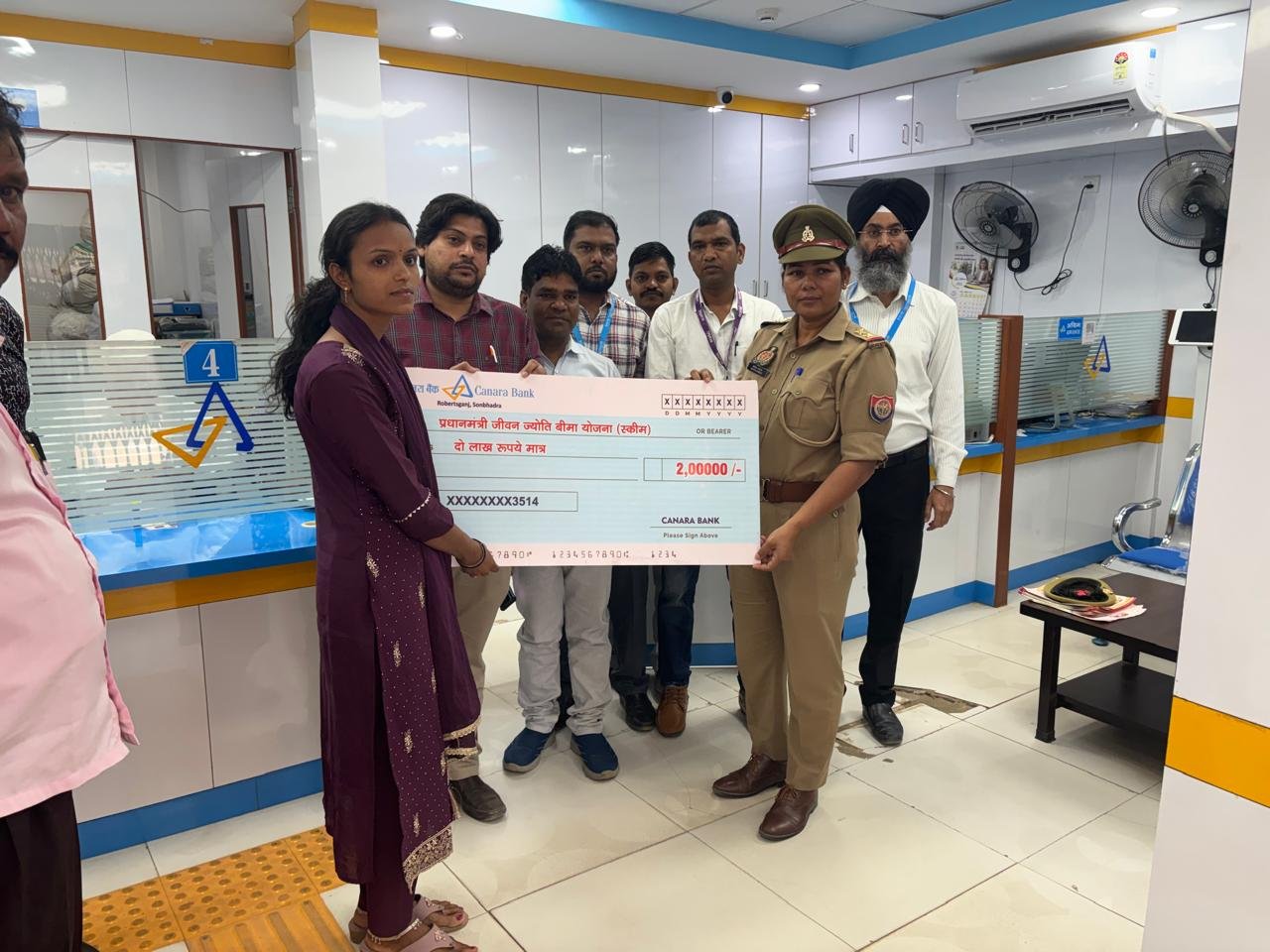 ब्रांच मैनेजर आरिफ अब्बास ने कहा कि हमारे शाखा में आशुतोष कुशवाहा बैंक के खाता धारक थे आशुतोष कुशवाहा बहुत दिनों से कैंसर से पीड़ित थे बैंक मित्र ने खाताधारकों का बीमा किया था। उनके मौत के बाद पत्नी को दो लाख का चेक दिया गया है। अत्यंत गरीब परिवार से हैं। इस रुपये से दोनों परिवारों की आर्थिक स्थिति में सुधार आयेगी। आशुतोष कुशवाहा की पत्नी ज्योति निवासी रामगढ़ को दो लाख का चेक दिया गया है। खाता धारक ने 436 रुपये सालाना का बीमा कराया था।