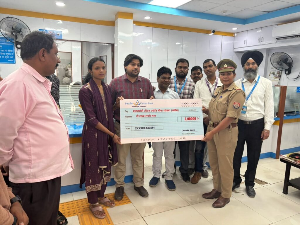 जिसका लाभ उनके परिवार को मिला है। उन्होंने कहा कि किसी भी ग्राहक को कोई भी समस्या हो तो शाखा में आकर बात कर सकते हैं। बताया गया कि हमारे पति कैंसर से पीड़ित थे जिससे उनकी मौत हो गई। जहां शाखा प्रबंधक ने बताया कि करीब तीन वर्ष पूर्व रविन्द्र ने बैंक मित्र शक्ति पाल के माध्यम से मात्र 436 रुपये का प्रीमियम जमा कर प्रधानमंत्री जीवन ज्योति बीमा योजना में बीमा कराया था। मृत्यु के बाद परिजनों ने बैंक से संपर्क किया, जिस पर विभागीय औपचारिकताएं पूर्ण कर आश्रित को बीमा राशि प्रदान की गई। इस अवसर पर महिला थाना प्रभारी सविता सरोज शाखा प्रबन्धक आरिफ अब्बास सहायक प्रबंधक धर्मवीर सिंह, लोन अधिकारी जितेंद्र यादव मुकेश गुप्ता,बैंक मित्र शक्ति पाल, संदीप कुमार सहित बैंककर्मी मौजूद रहे।