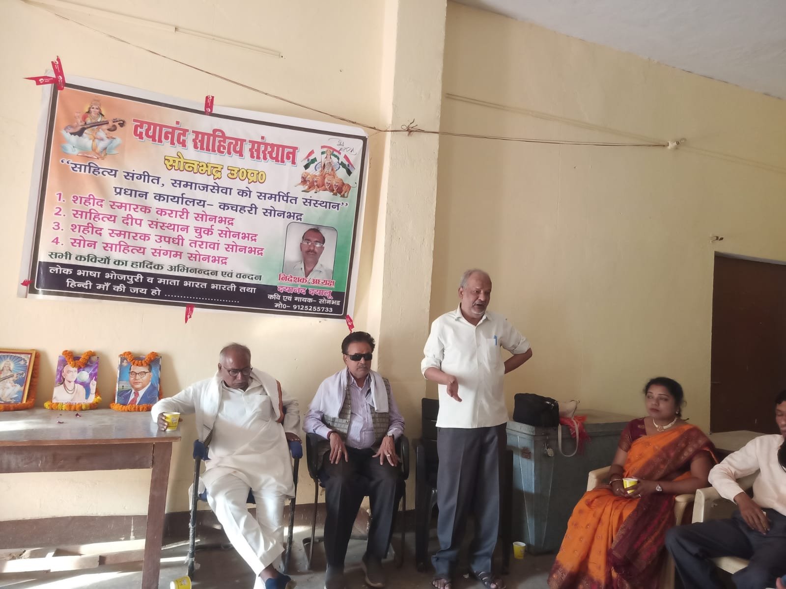 सोनभद्र। शहीद स्थल करारी, दयानंद साहित्यिक संस्थान, साहित्य दीप संस्थान तथा सोन संगीत फाउंडेशन के संयुक्त तत्वावधान में वृहद काव्य संध्या का आयोजन सोनभद्र बार एशोसिएशन सभागार में मंगलवार को महान गणितज्ञ आर्यभट्ट व बाबा साहब भीमराव अम्बेडकर जयंती के उपलक्ष्य में आयोजित किया गया। अध्यक्षता कर रहे वरिष्ठ शायर अब्दुल हई, सोनभद्र बार एसोसिएशन अध्यक्ष अशोक प्रसाद श्रीवास्तव एड व महामंत्री योगेश दिवेदी एड ने शारदे के चित्र व आर्यभट तथा अंबेडकर की प्रतिमा पर माल्यार्पण किया। तदुपरांत गायक सुशील मिश्रा के सस्वर वंदना माई शारदे आ ज्योतिआ जरावा, अन्हरिया भगावा हो से आयोजन का आरंभ हुआ।